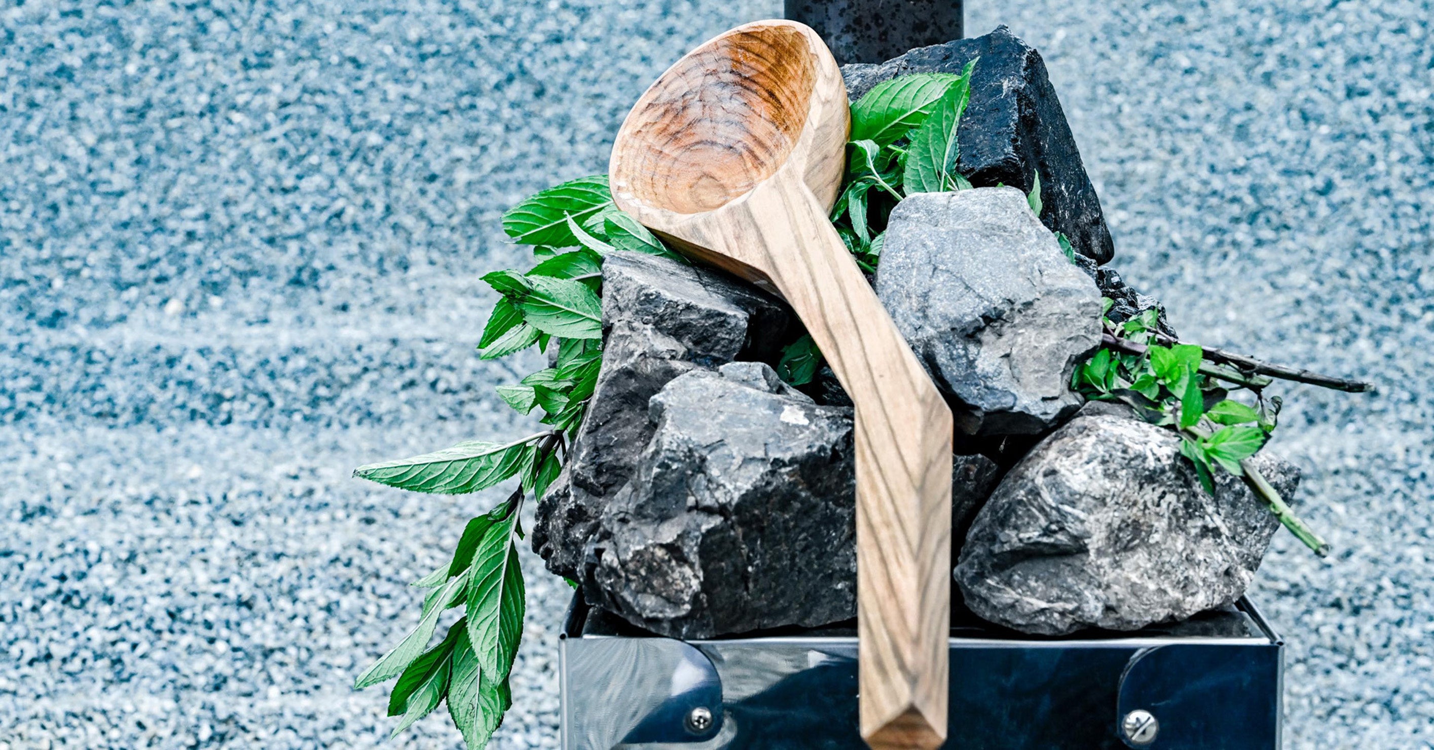 比婆山系の強く、温かい雰囲気のサウナストーンや、手仕事で作られたサウナにまつわる道具たちです。