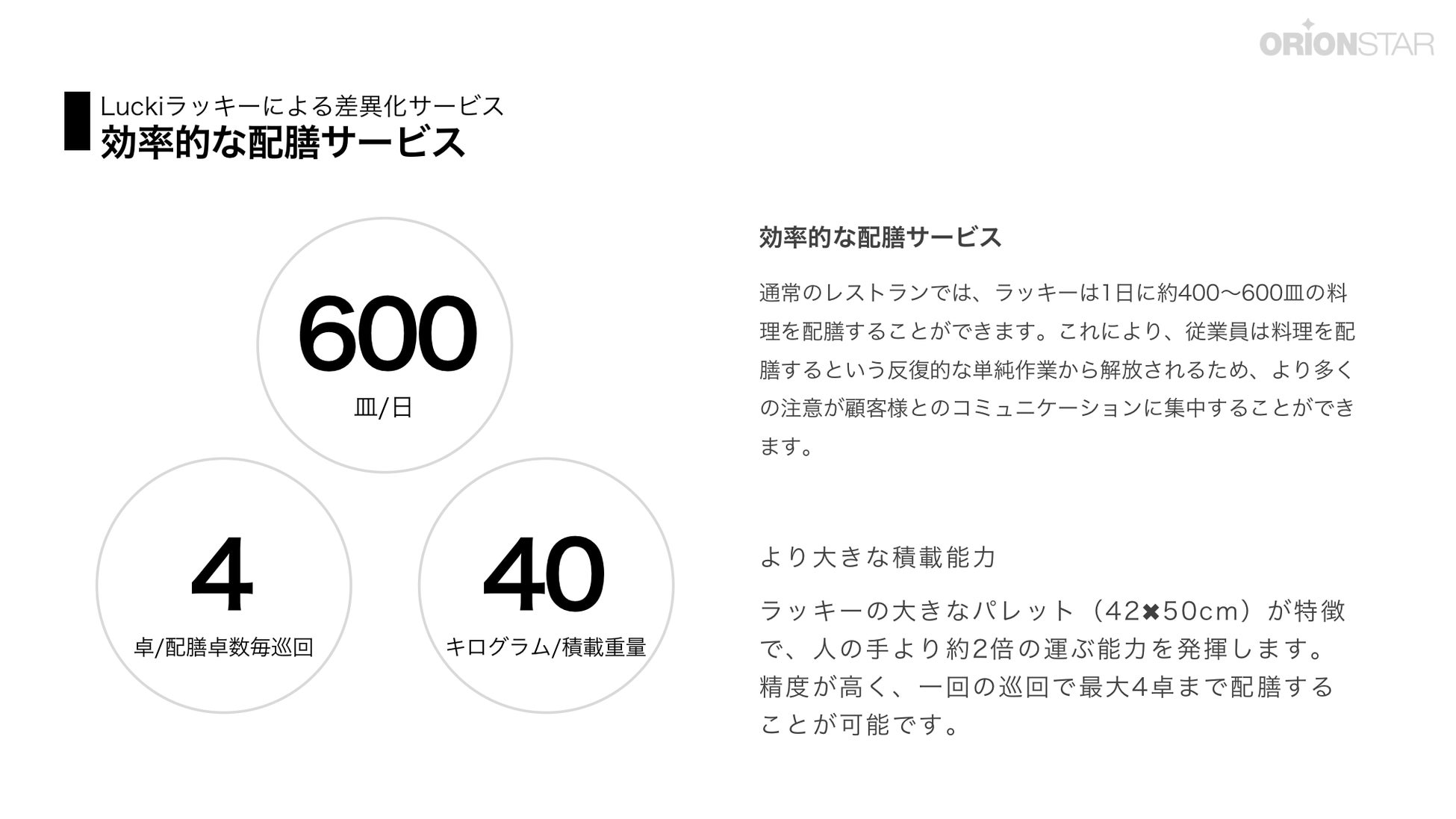 オリオンスターテクノロジー株式会社(中国北京、代表取締役社長 傅盛/以下「OSR」)はAi搭載自律走行可能な配膳ロボット「Lucki」ラッキーの日本市場にて正式販売することが開始しました。