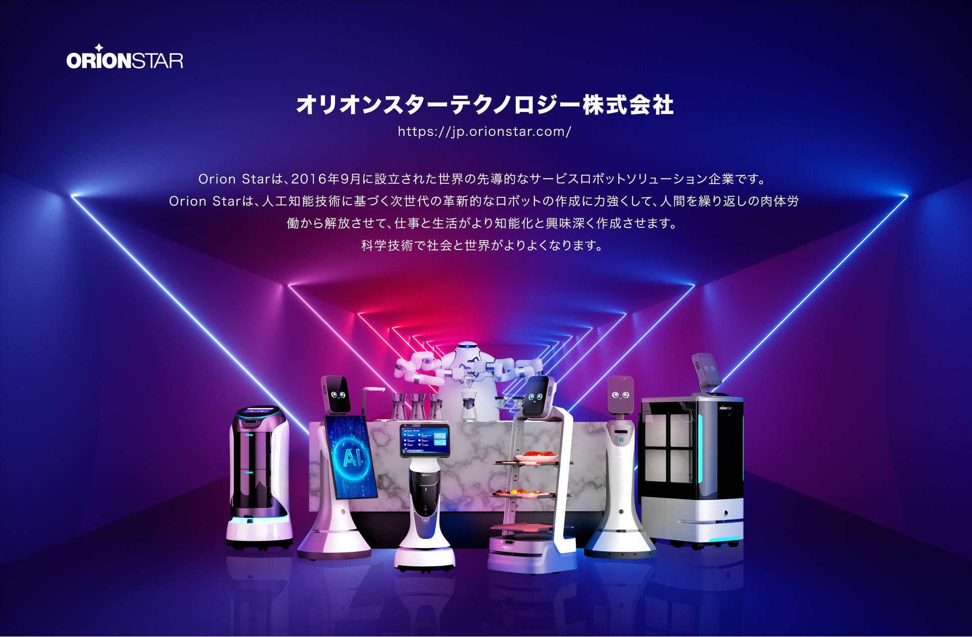 OSR社は世界ではトップレベルのAi人工知能ロボット会社で、2016年9月に設立したベンチャー企業です。独自の開発された音声インタラクティブシステム、視覚ナビゲーションシステムなどの人工知能テクノロジー及びOrionOS ロボット操作システムを有しております。