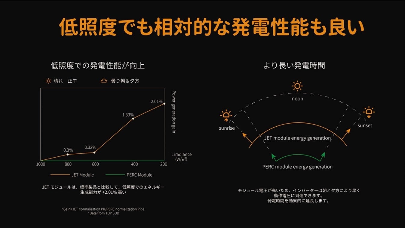 ●低照度でも相対的な発電性能も良い