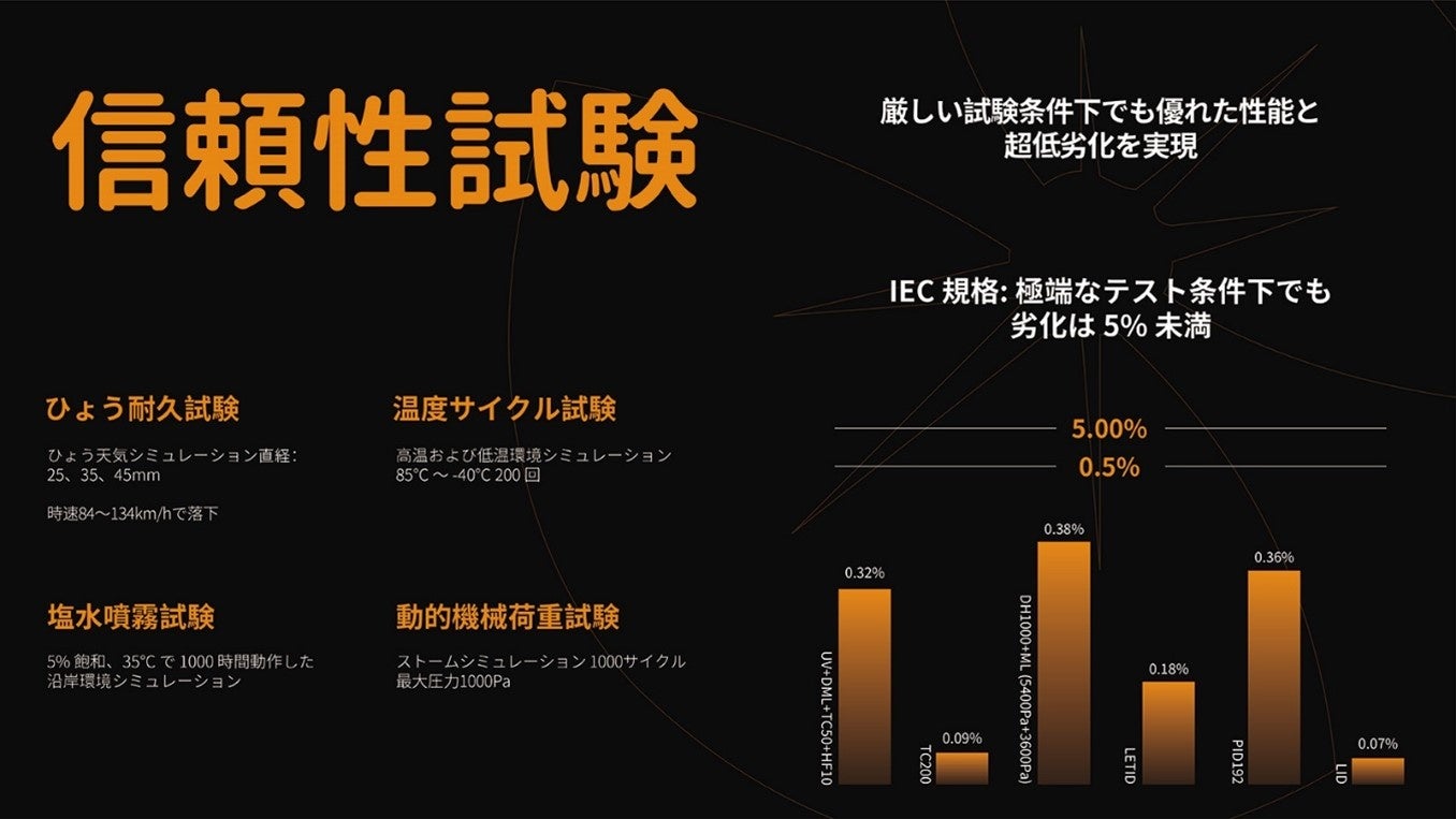 電力温度係数が-0.29%/℃と低いため、高温条件下でも安定した発電が可能。
