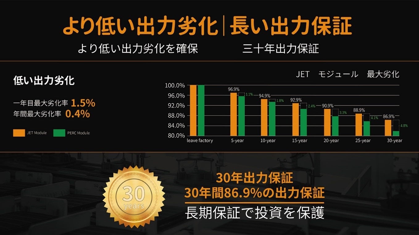 ●より低い出力劣化を確保し、30年出力保証