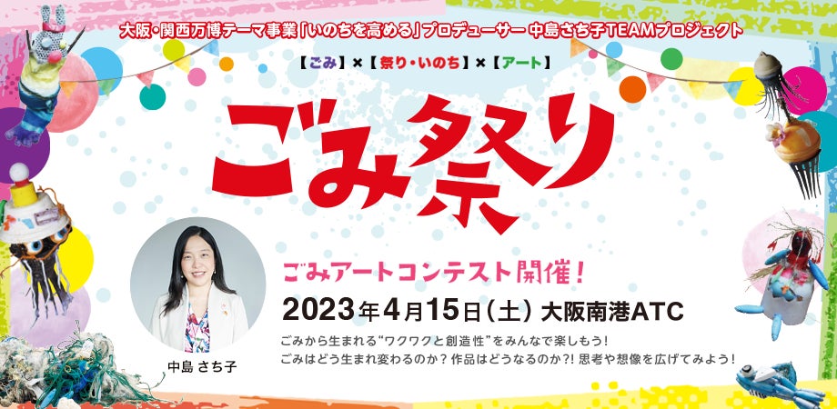 一般社団法人steAmBAND(所在地:東京都新宿区/代表理事:中島さち子)は、大阪・関西万博の開催2年前イベントとして開催される「ATC OSAKA MIRAI EXPO」にて”ごみ祭り”を開催いたします。ごみ問題への関心、ごみをテーマとした”ごみ祭り”は、大阪・関西万博のテーマ「いのち輝く未来社会のデザイン」や、海の万博に向けての取組みを国際社会とともに推進することにつながるものと考えます。2024年5月3日(ごみの日)、そして2025年へ繋げていく、イベントとなります。