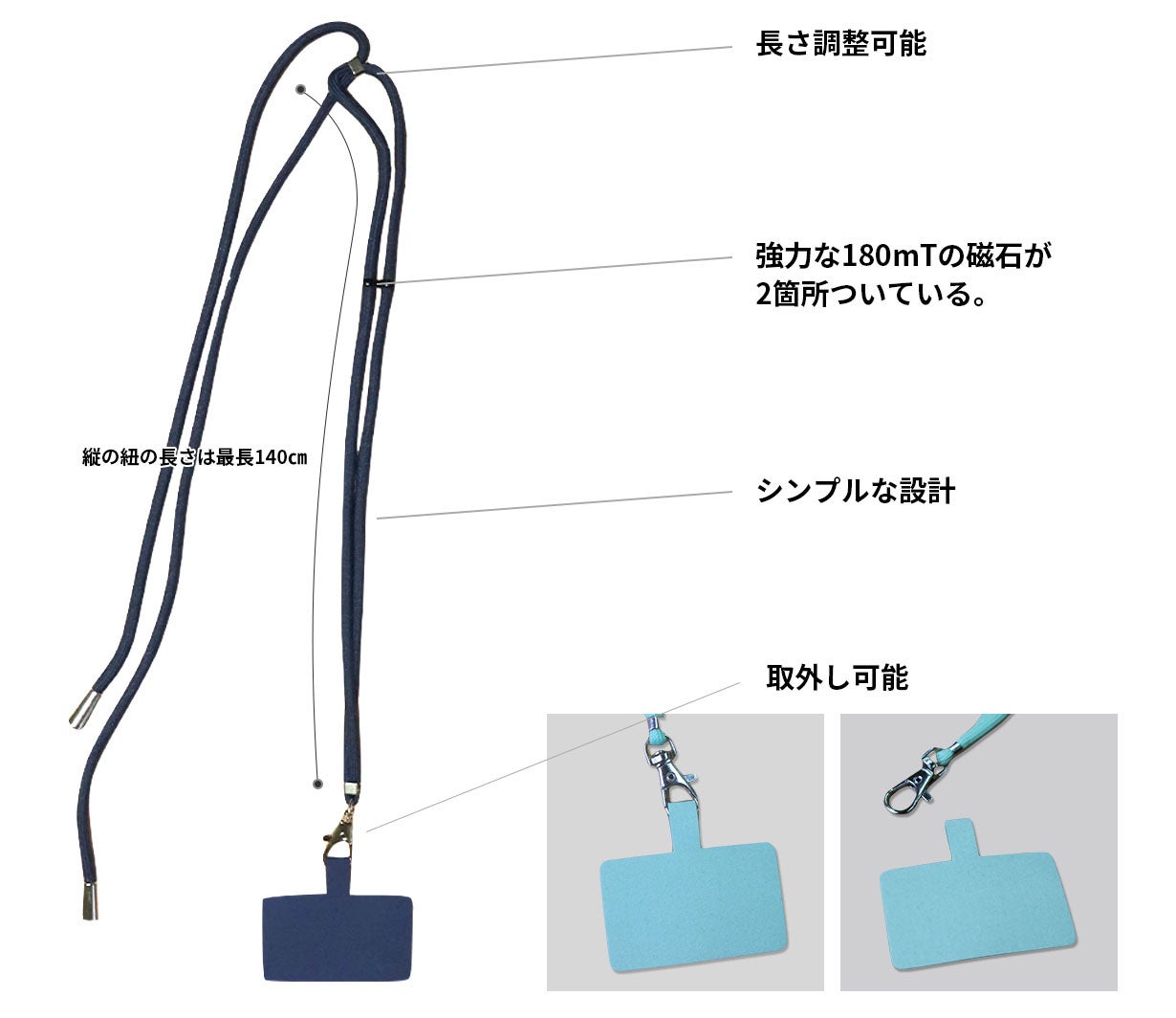 小さな磁石がついているだけなので、ネックストラップにしか見えず、おしゃれで使いやすいのがこの商品の特徴です。またシンプル設計でどんな世代の方でも使ってもらいやすいのも嬉しいところ。