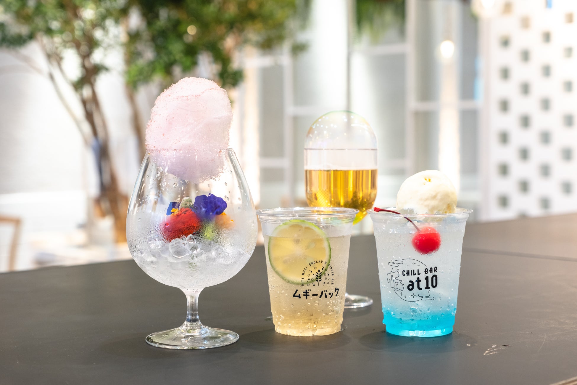 「バブルカクテル」「フラワーモヒート」「コットンキャンディカクテル」などの人気商品に加えて、今年は「オトナのクリームソーダ」と「フルーツあまざけ」が新登場!