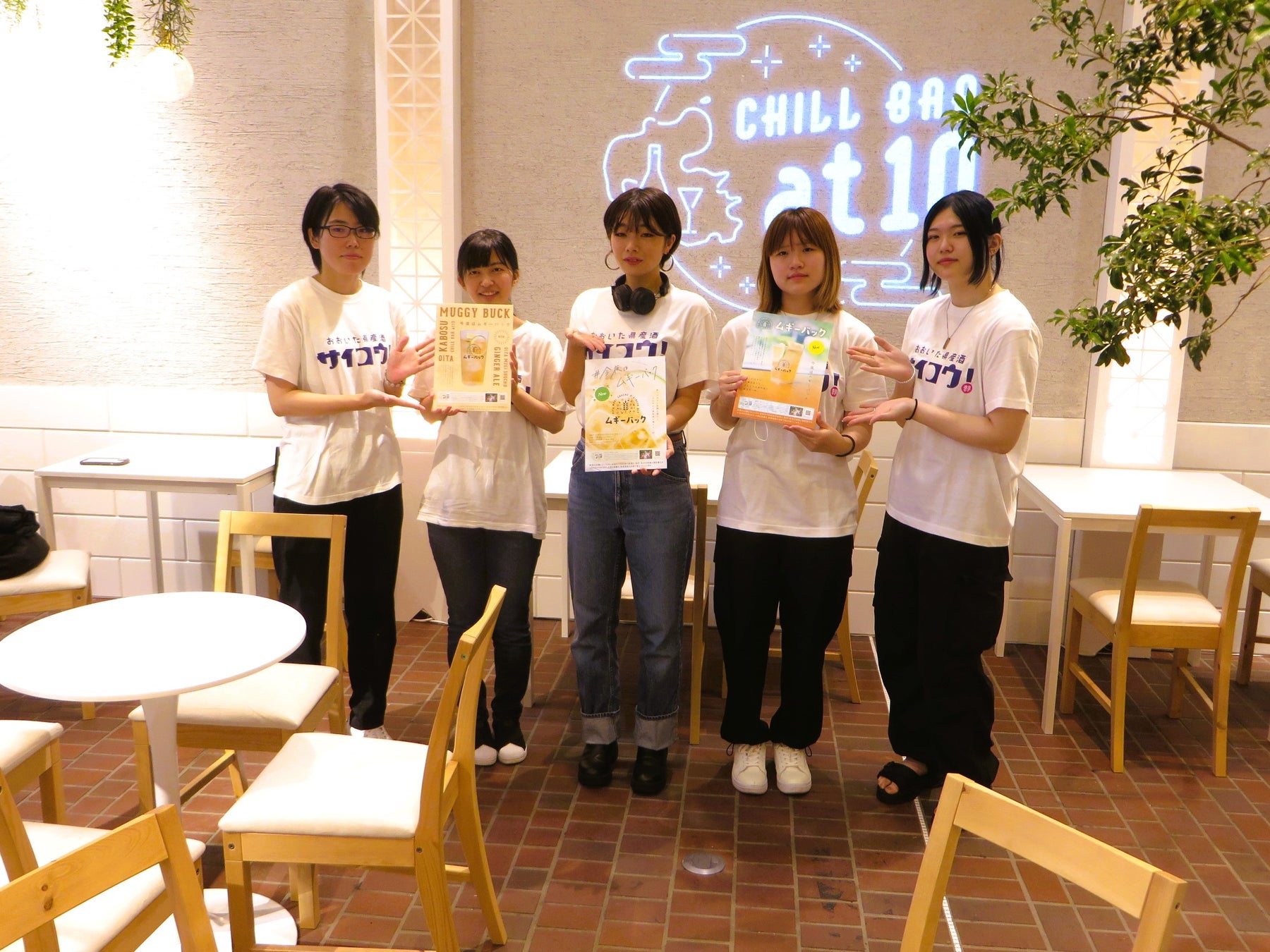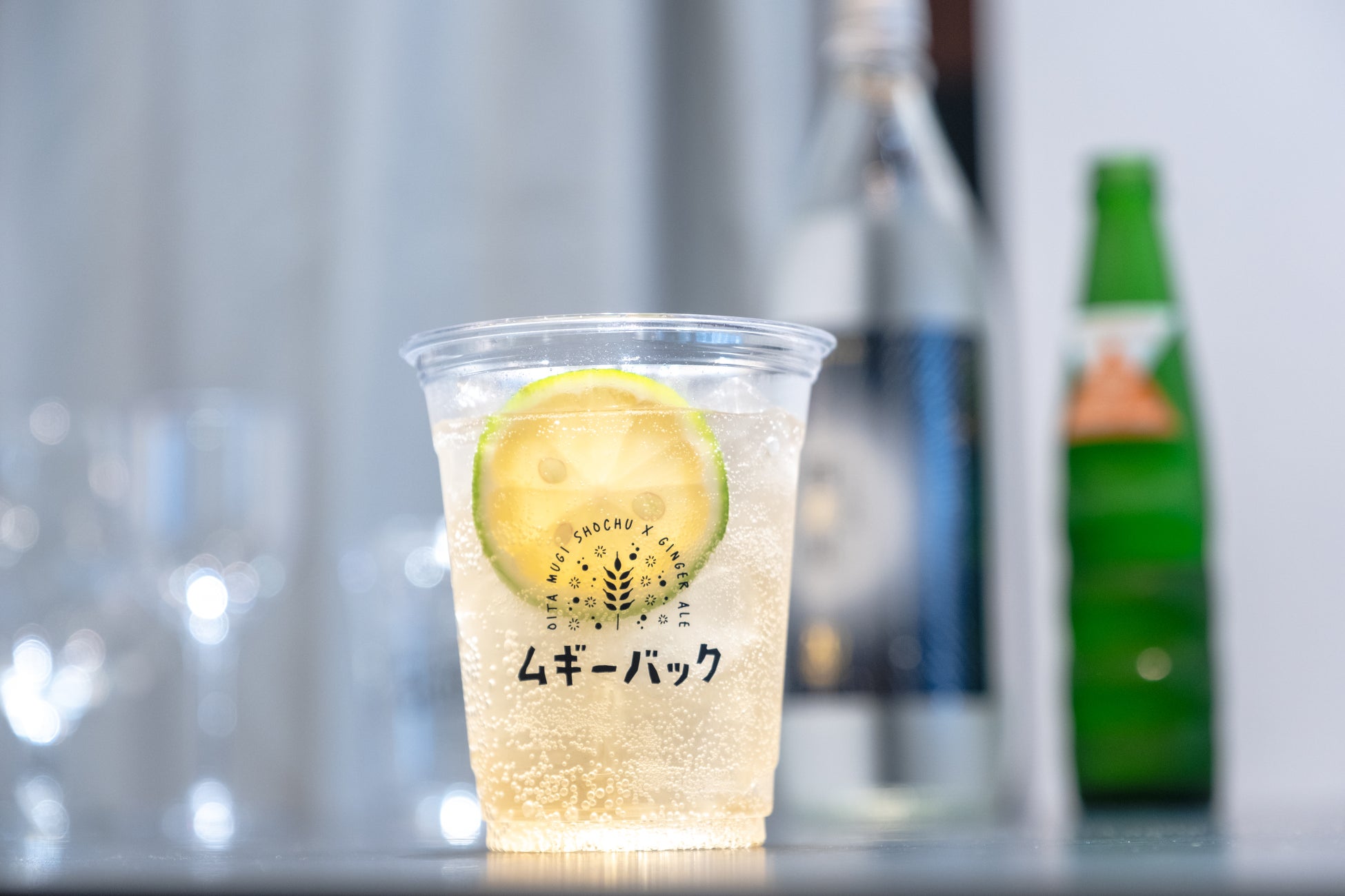 更に、別府大学の学生で構成する「おおいた県産酒 サイコウ!部」の皆さんで、大分むぎ焼酎を使った商品「ムギーバッグ」を開発しました!!焼酎とジンジャエールの配合にこだわり、かぼすをトッピングした爽やかなカクテルです。是非お試しください。