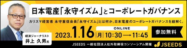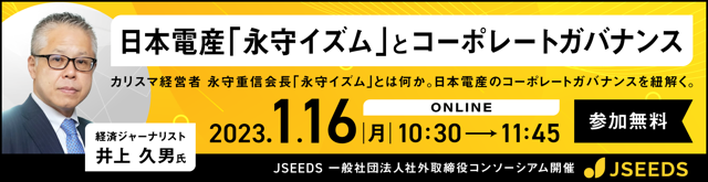 主催:JSEEDS 一般社団法人社外取締役コンソーシアム 開催日時:2023年1月16日(月)10:30 ~ 11: 45形式:ZOOMウェビナー参加費:無料 | オンライン |