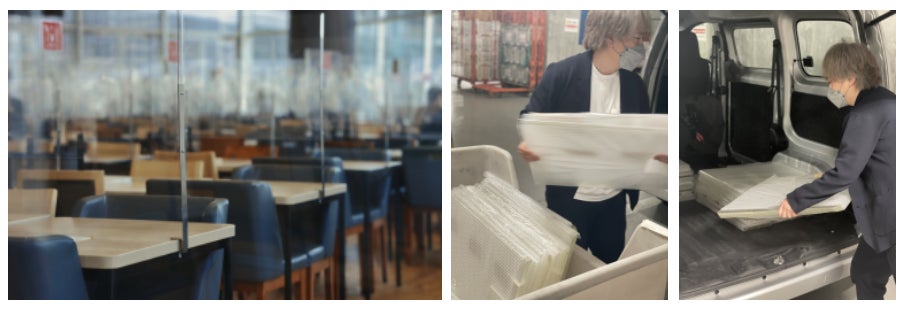 (2021年時点でコロナ対策として使われた飛沫防止用のアクリル製パーテーションが国内だけでも300万枚あると推定される)