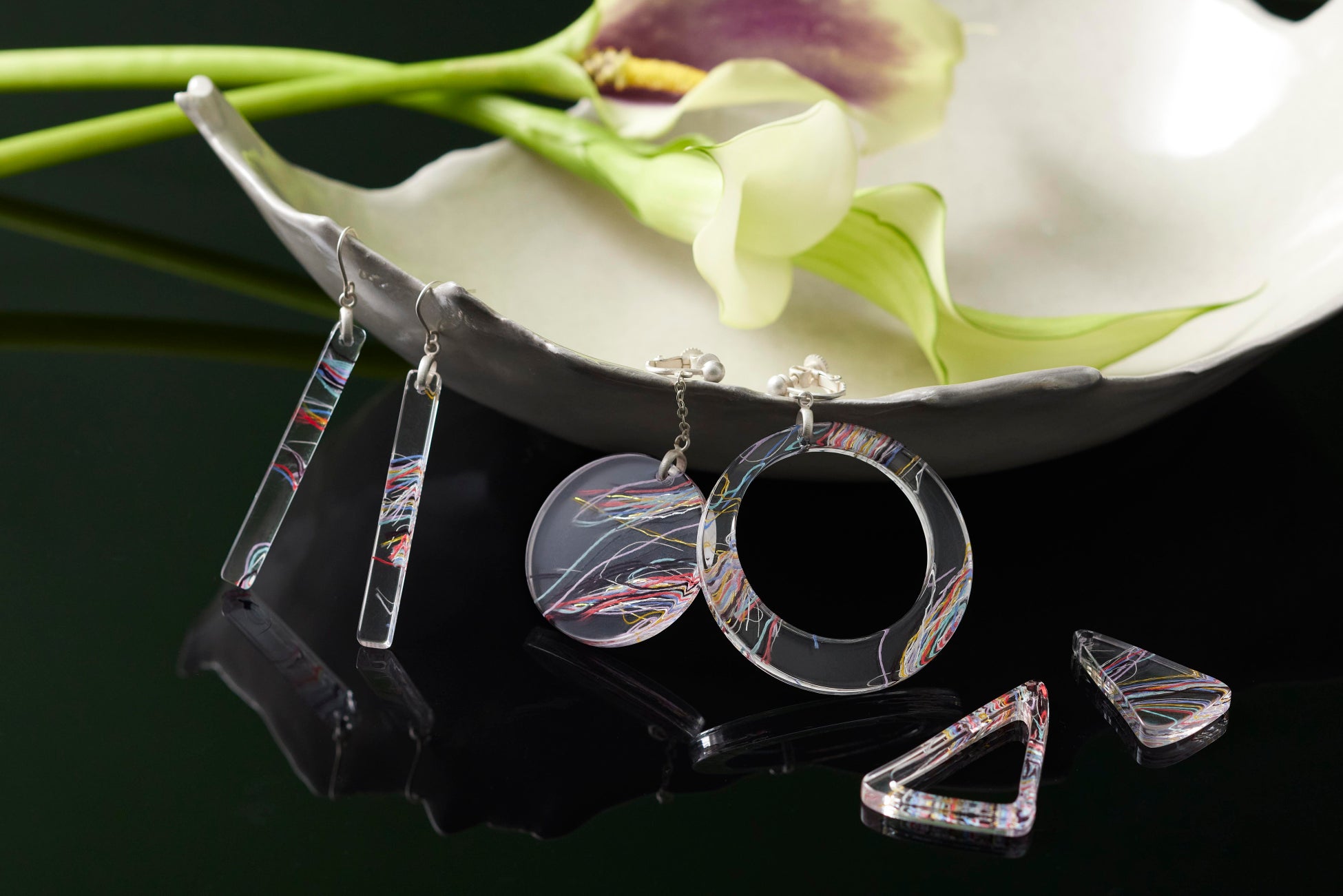 アクリルをメインに鏡、木、紙、糸、布、化粧品、コーヒー豆、海洋プラスチック等の廃材をアップサイクルし製品化、販売しています。アップサイクル時にあえて着色等はせず、役目の終えた素材の持つ色味や質感、偶然できる重なりを活かし、一点ものの製品として新しい命を吹き込んでいます。