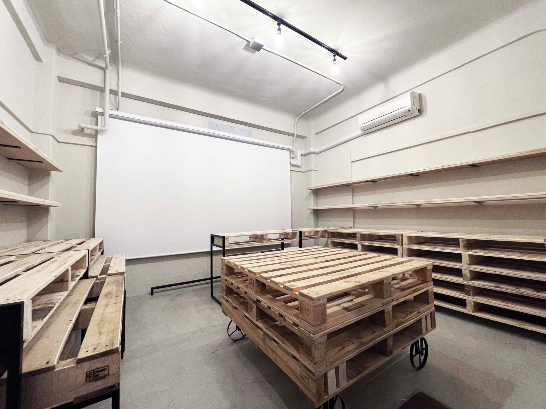 年間廃棄量約3,500万枚以上といわれる木製のパレットを再利用した什器、跳び箱を再利用した椅子等、新品では出ない風合いを楽しめます。