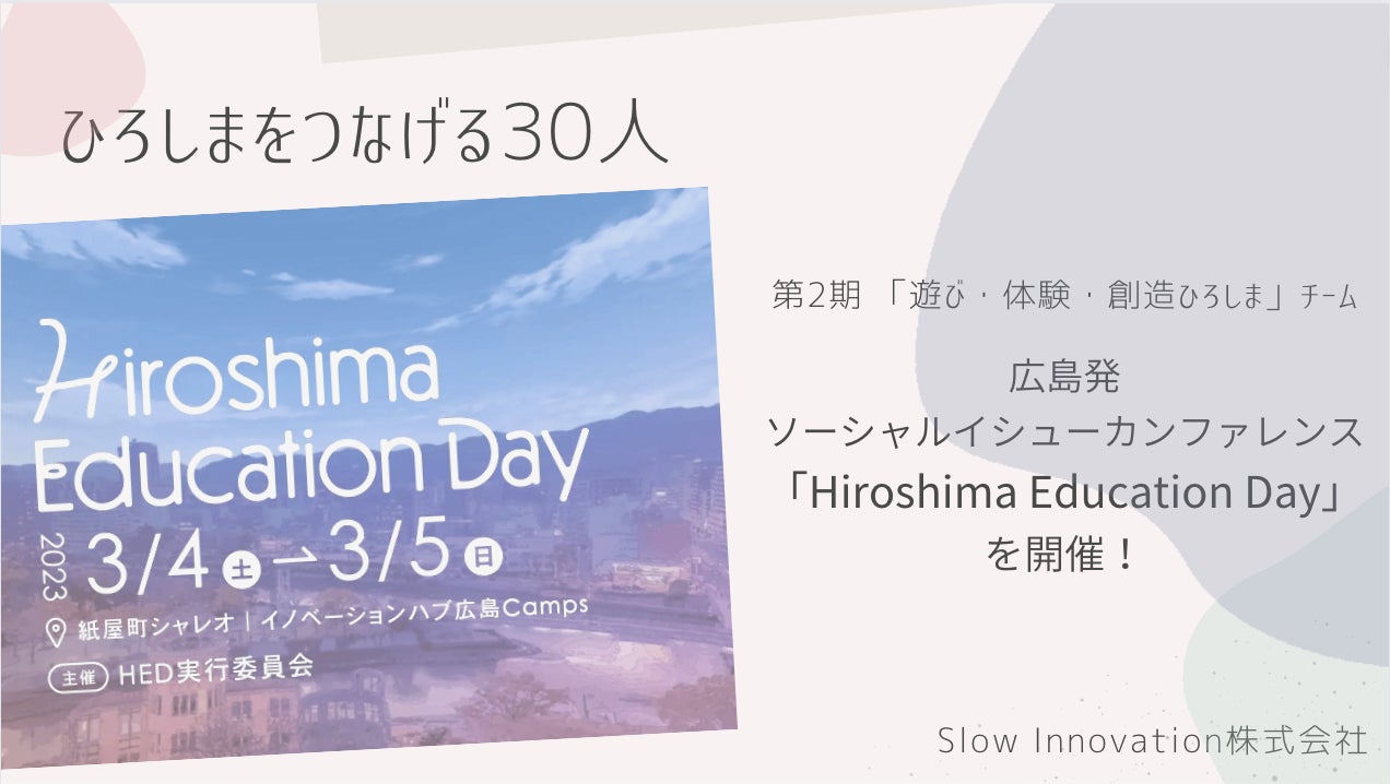 そして来る2023年3月4日・5日には、「遊び・体験・創造ひろしま」チームの発起した想い・アイディアをベースとする「Hiroshima Education Day」が開催されます。