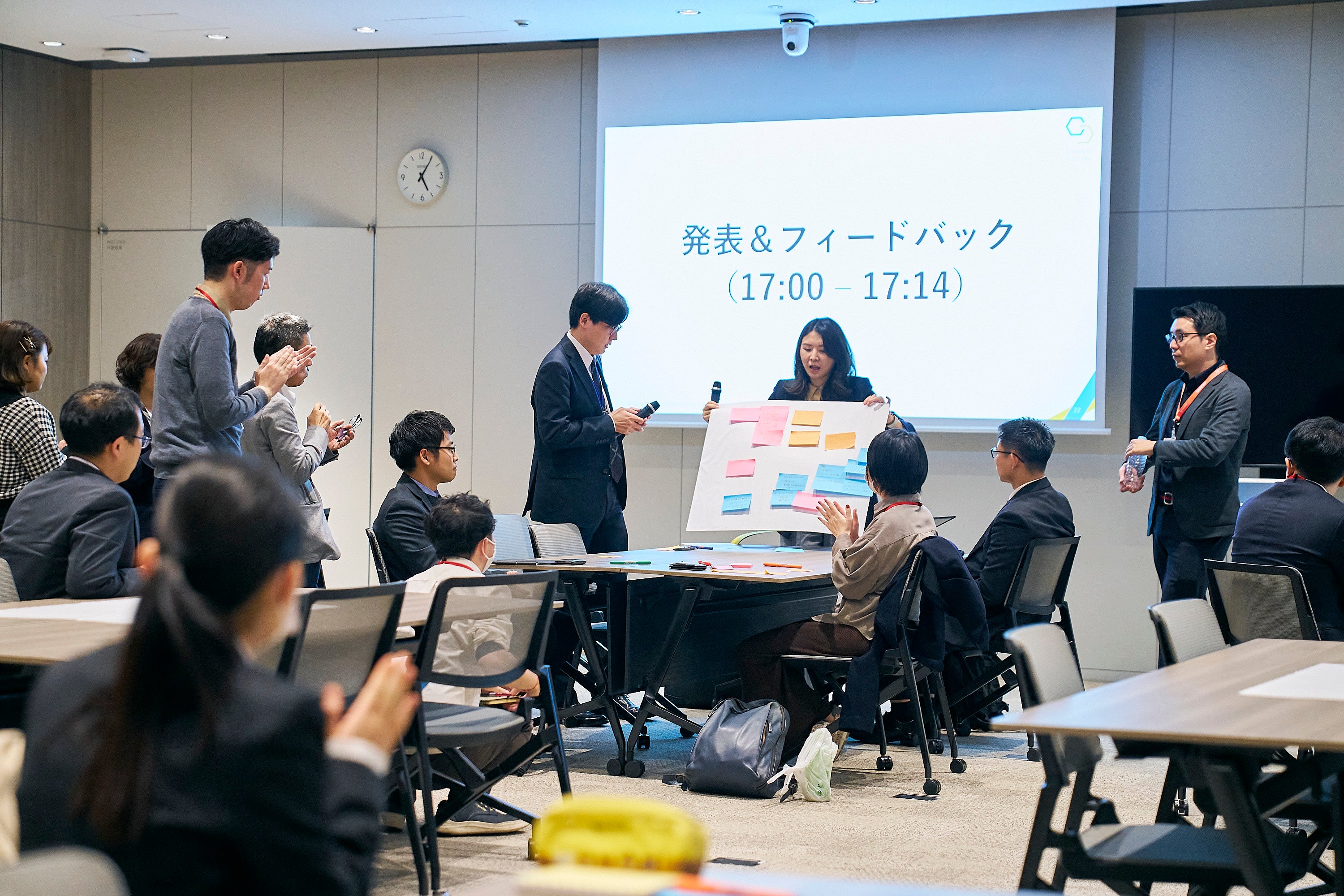 当日は講演者と参加者でミニワークショップも開催。グループワークでアイデアや課題解決の方法を話し合うと共に中外製薬の最新の研究施設「中外ライフサイエンスパーク横浜」の見学も行いました。