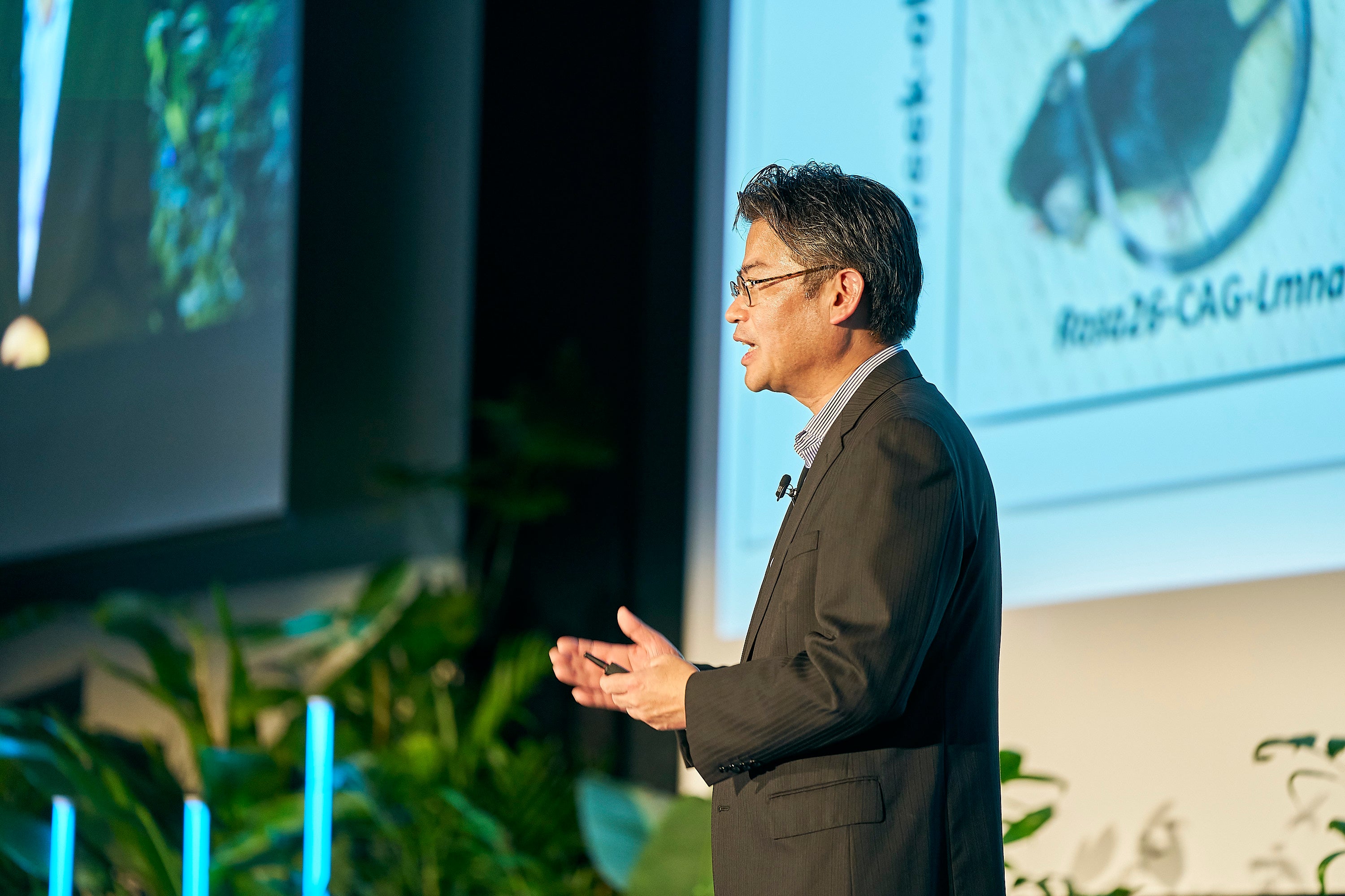 京都大学iPS細胞研究所とタケダが2016年度から開始した共同研究プログラムであるT-CiRA。そのユニークで革新的な産学連携アプローチを土台とし、2020年のノーベル化学賞に選ばれたゲノム編集技術と、2023年のノーベル生理学・医学賞に選ばれた核酸(mRNA)技術、さらにこの技術と共にCOVID-19のワクチン開発に貢献した脂質(lipid nanoparticle)技術、これら3つの画期的な基盤技術を融合した新しい治療コンセプトについて紹介しました。未だに満足できる治療法のない疾患領域において、革新的な治療法を一日でも早く患者さんに届けるために、私たちは挑戦し続けます。