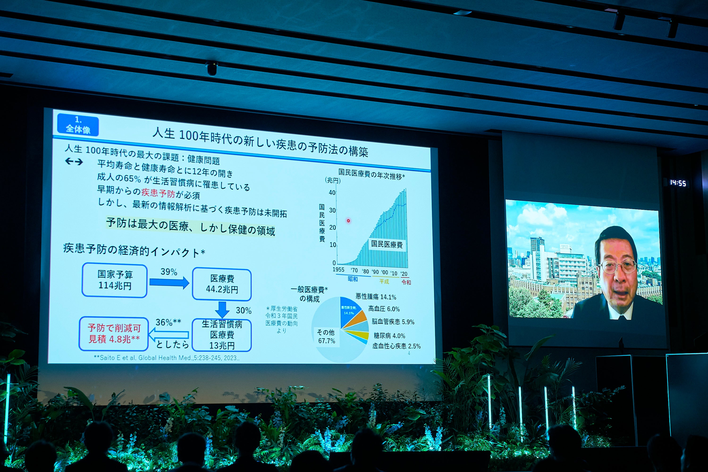 人生100年を謳歌するには健康寿命の延伸が必須で、その最も効果的方策は疾患予防です。セミナーでは、健診情報とゲノムタイピング情報を合わせれば、新しい疾患リスク予測が可能となることを示しました。同意を取り、個人情報を保護し、今後も多層的生体情報を追加・解析すれば、予測精度はより高まるはずです。さらに最新の情報科学を駆使し、自らの生体情報からデジタルツインを構築し、様々な生活習慣を体験させて、将来の健康状態をシミュレーションできるプログラムも検討中です。その基本は日本特有の正確な健診データと情報科学の進歩。いのちは一つですが、デジタルツインを活用してリスクを予知、予防し、健康長寿を楽しみましょう。