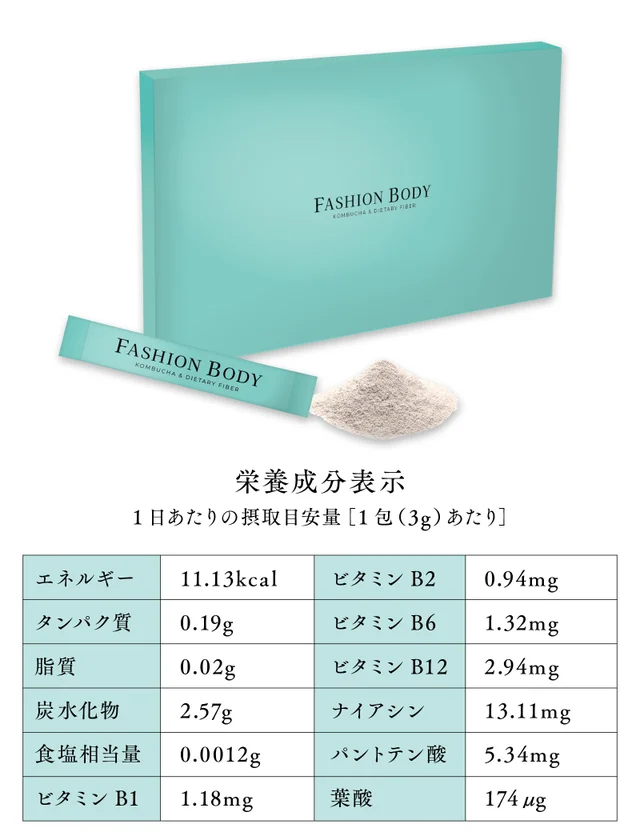 今回、事前登録の30名を含め先着100名様にはFASHIONBODYのサンプルを一包プレゼントいたします。