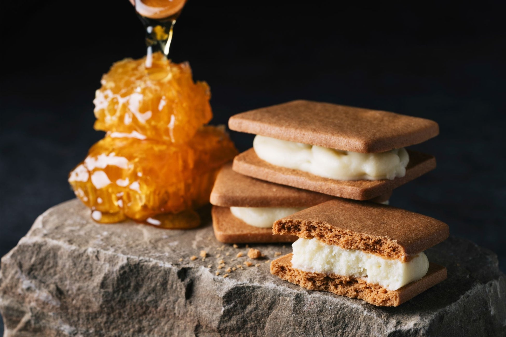 「椎葉の秘蜜」はそのままで主役になれる濃厚な味わい。シンプルにバターサンドの発酵バタークリームに合わせています。蜂蜜の濃厚なコクと、はちみつのコクが合わさって相乗効果をもたらします。当店のバターサンドを作る過程で大切にしているのは、味を足していくのではなく、引き算の思考で味を決めること。余計なものを足さず、ポテンシャルのある素材の味を、そのまま味わっていただくということです。
