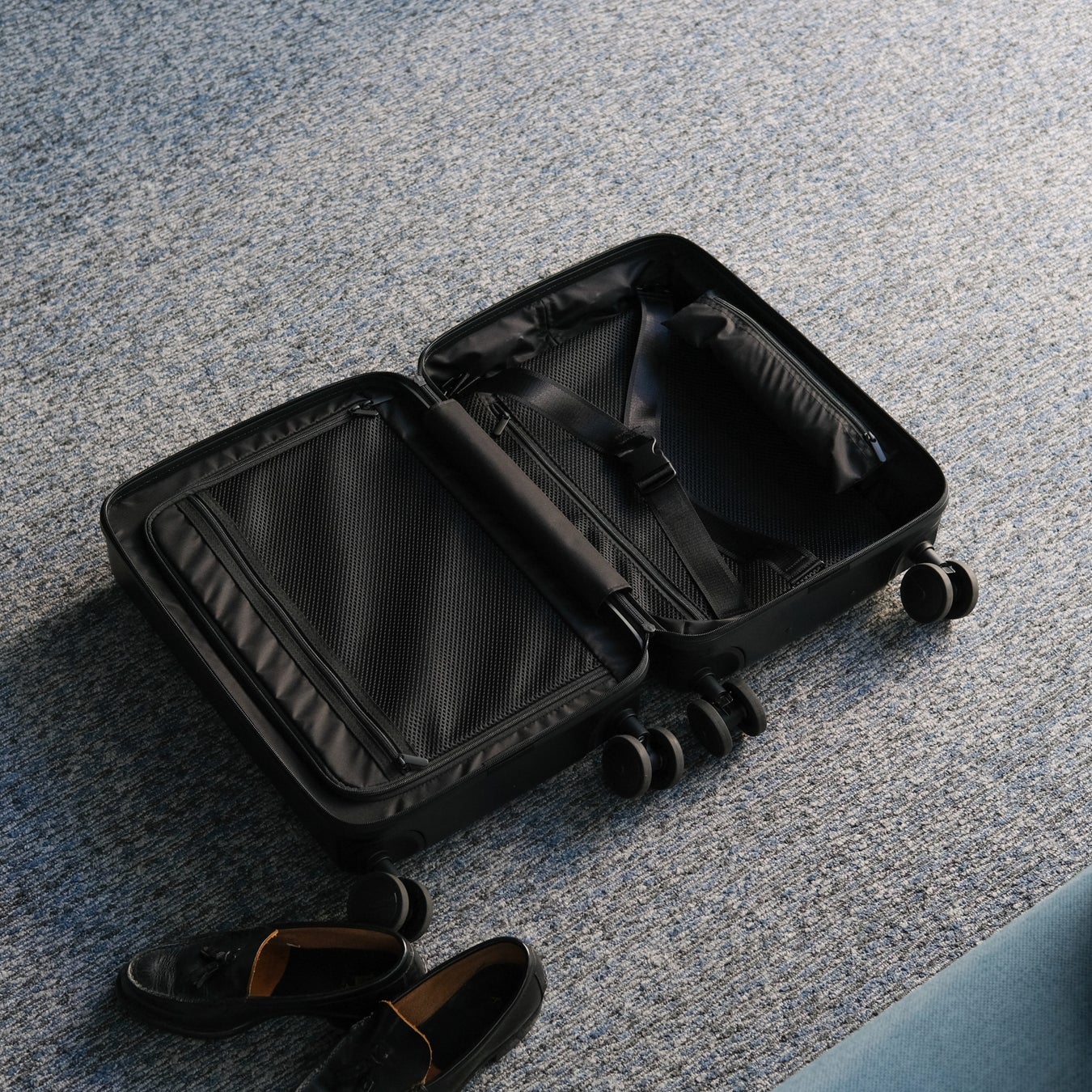 ドイツ製の航空宇宙グレードのポリカーボネート素材Makrolon®を採用し、耐久性と軽さの絶妙なバランスを実現しました。特に、日本が誇る「HINOMOTOサイレントランキャスター」の採用により、驚くほど静かでスムーズな移動を実現しました。また、車輪ストッパーがついており電車の中でも気にせずお使いいただけます。