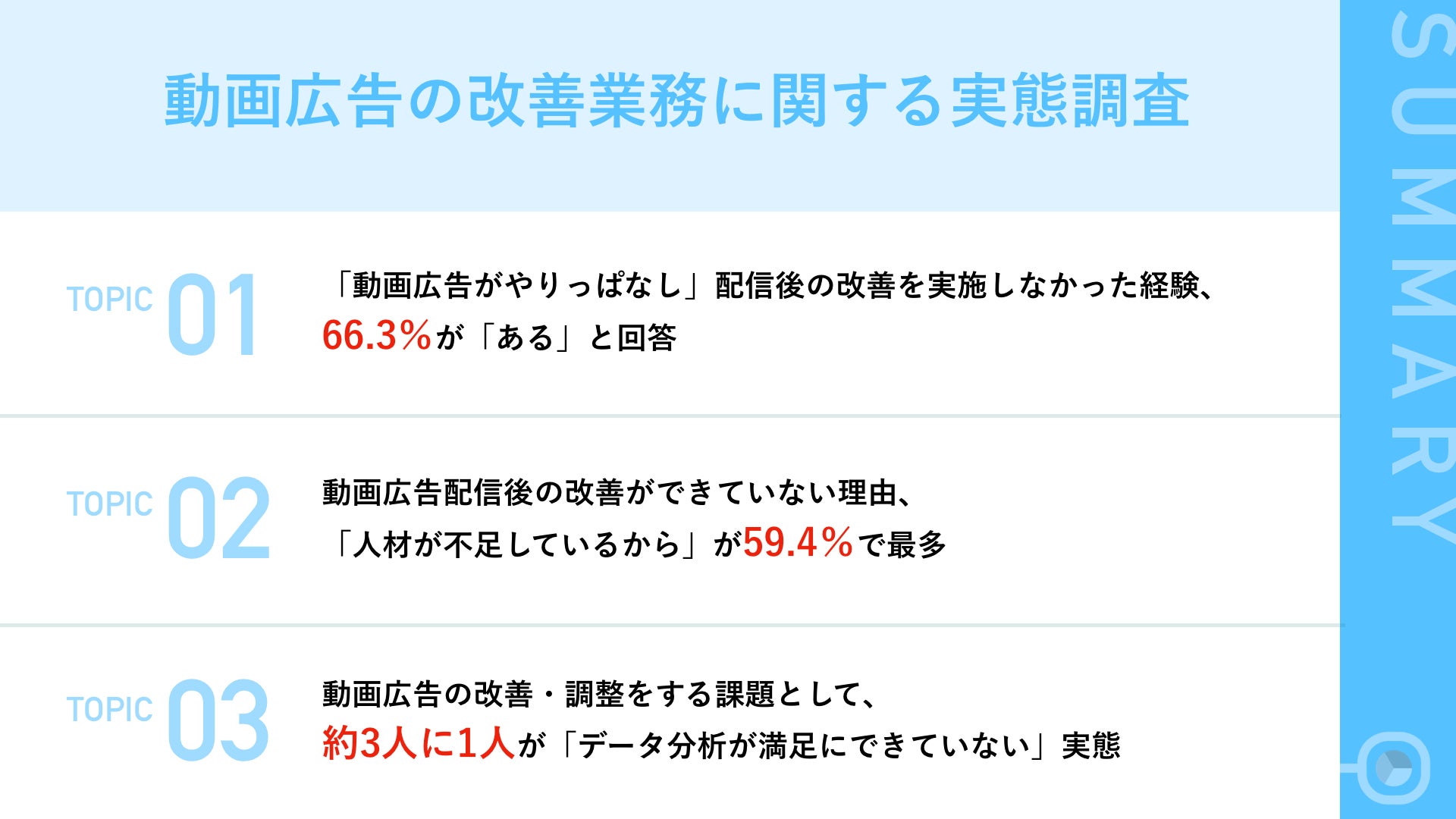 - 約7割が、「動画広告やりっぱなし」で改善を実施していなかった経験あり