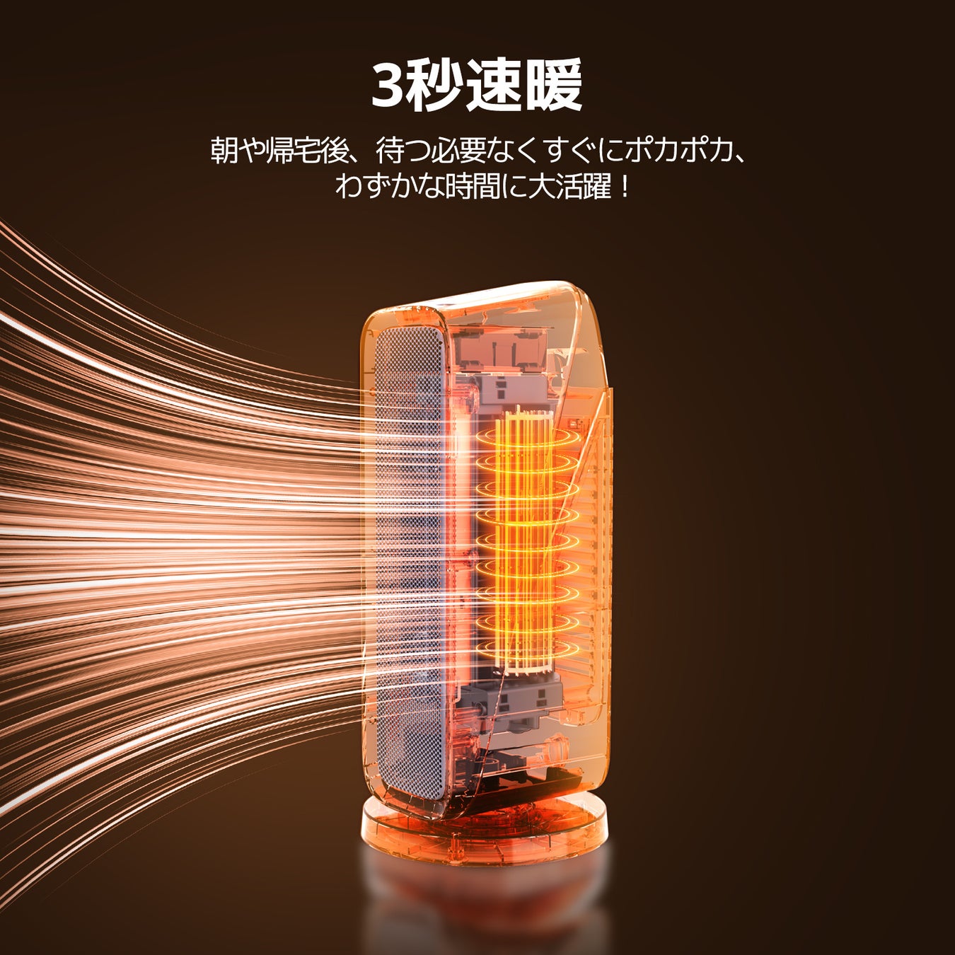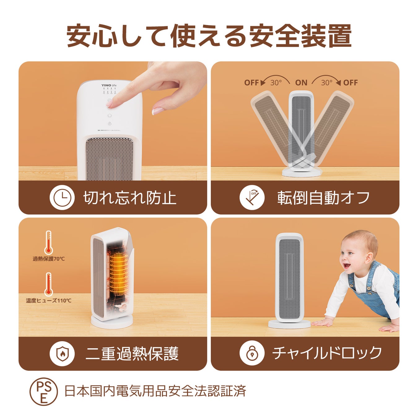 【YINO life】2022年冬の新作セラミックヒーター!PTCセラミック加熱技術で3秒で急速に加熱し、最大80℃自動首振り、リラックスした快適な睡眠を楽しめます。