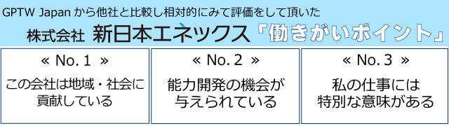 その結果、新日本エネックスは、他社と比較し相対的にみて以下の3点の働きがいポイントを評価して頂きました。