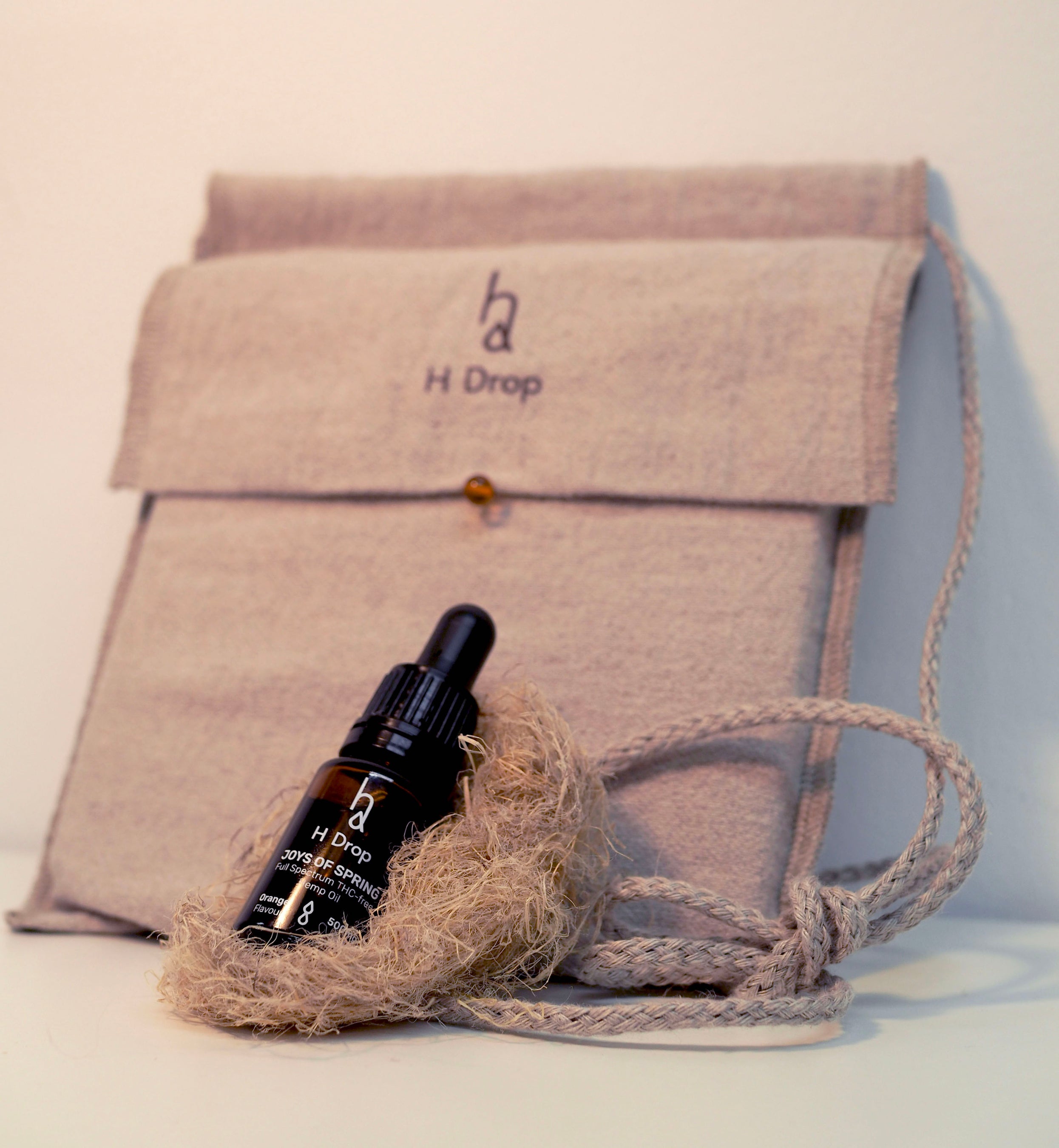 H Drop Japanオンラインショップのオープン記念として、ヘンプ繊維で作ったポシェットを抽選で15名様にプレゼント!原材料のヘンプの使わなかった茎の部分を使い、1からすべてハンドメイドで作っているため大量生産をすることが難しくなっておりますので、オープン記念のノベルティとなります。