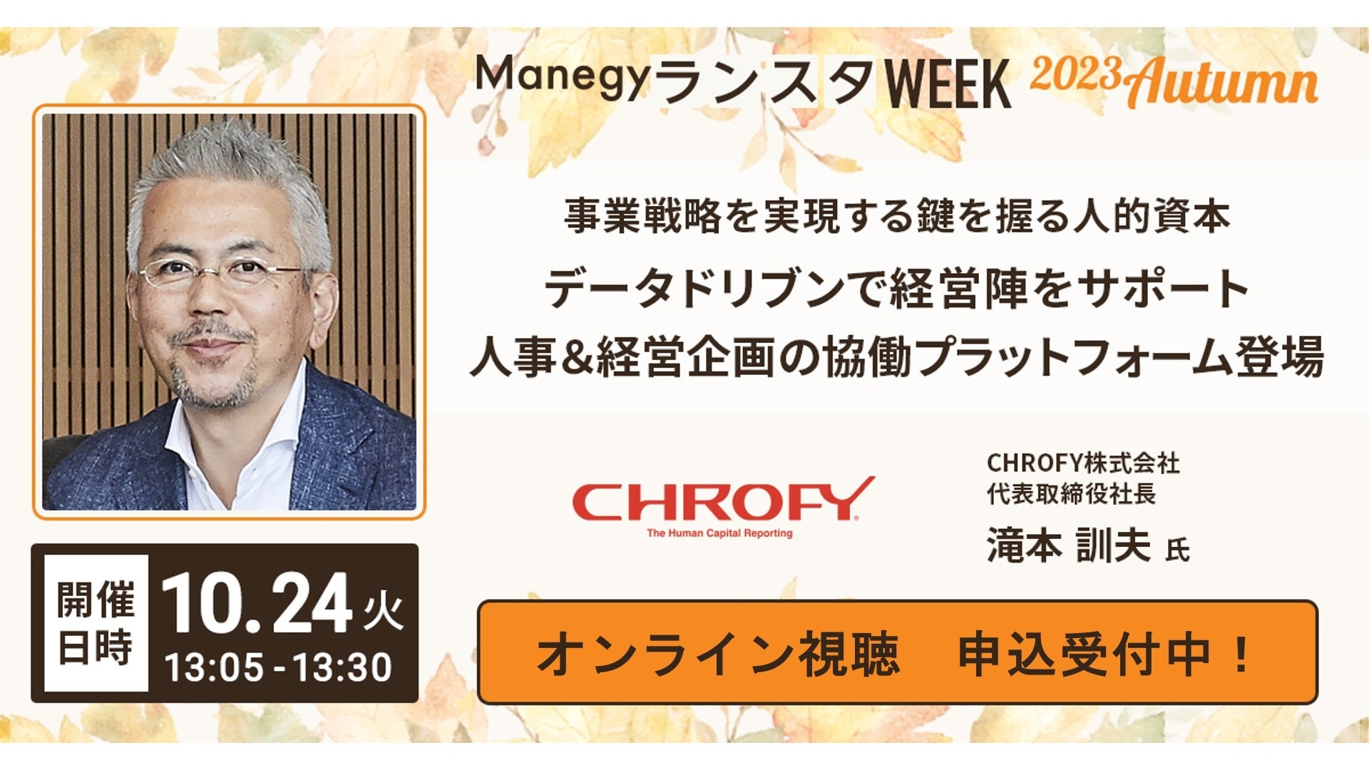 「第12回ManegyランスタWEEK -2023 Autumn-」に人的資本経営を支援するCHROFY(クロフィー)が初登壇