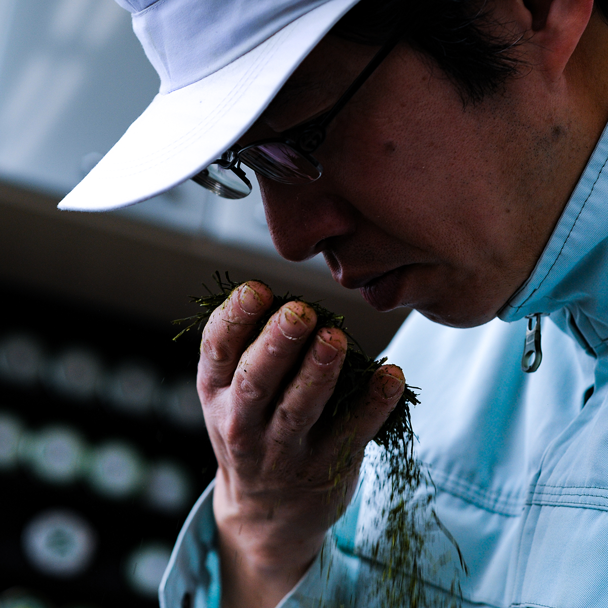 国内に39名のみ存在する日本茶鑑定士 (※) の協会会長。日本茶インストラクター、茶鑑定技術6段、手揉教師資格を保有。ボトリングティーの全ての茶葉を監修。