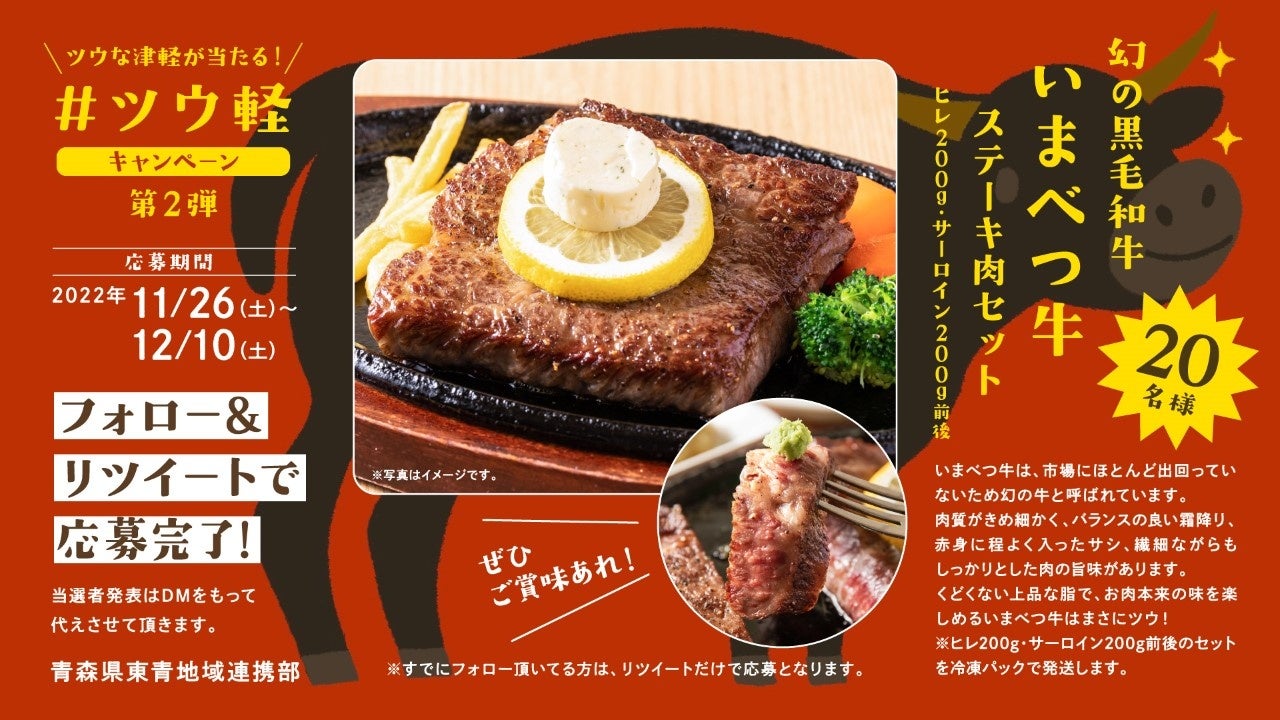 キャンペーン第二弾は、今別町の幻の黒毛和牛「いまべつ牛 ステーキ肉セット」をプレゼントします。