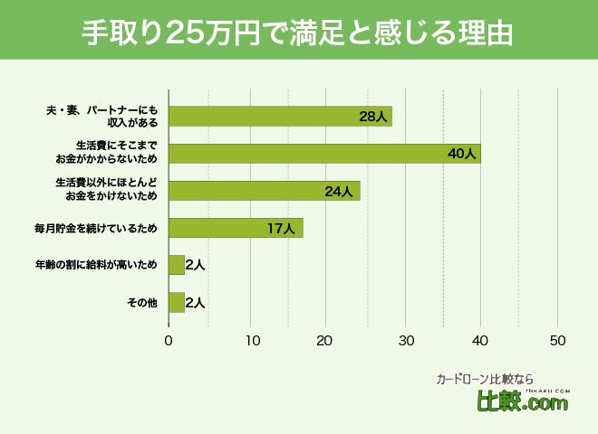 - 手取りに満足だと思う理由は生活費にそこまでお金がかからないから
