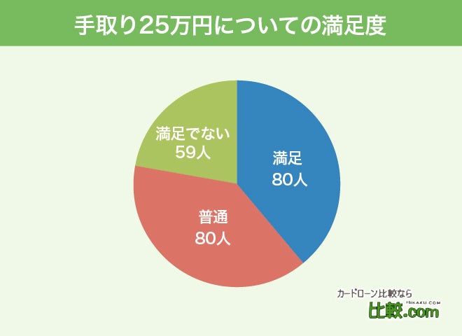 手取り25万円に対するアンケートの結果として、現状の収入に「満足だ」と感じていると答えたのは80人で全体の36%。