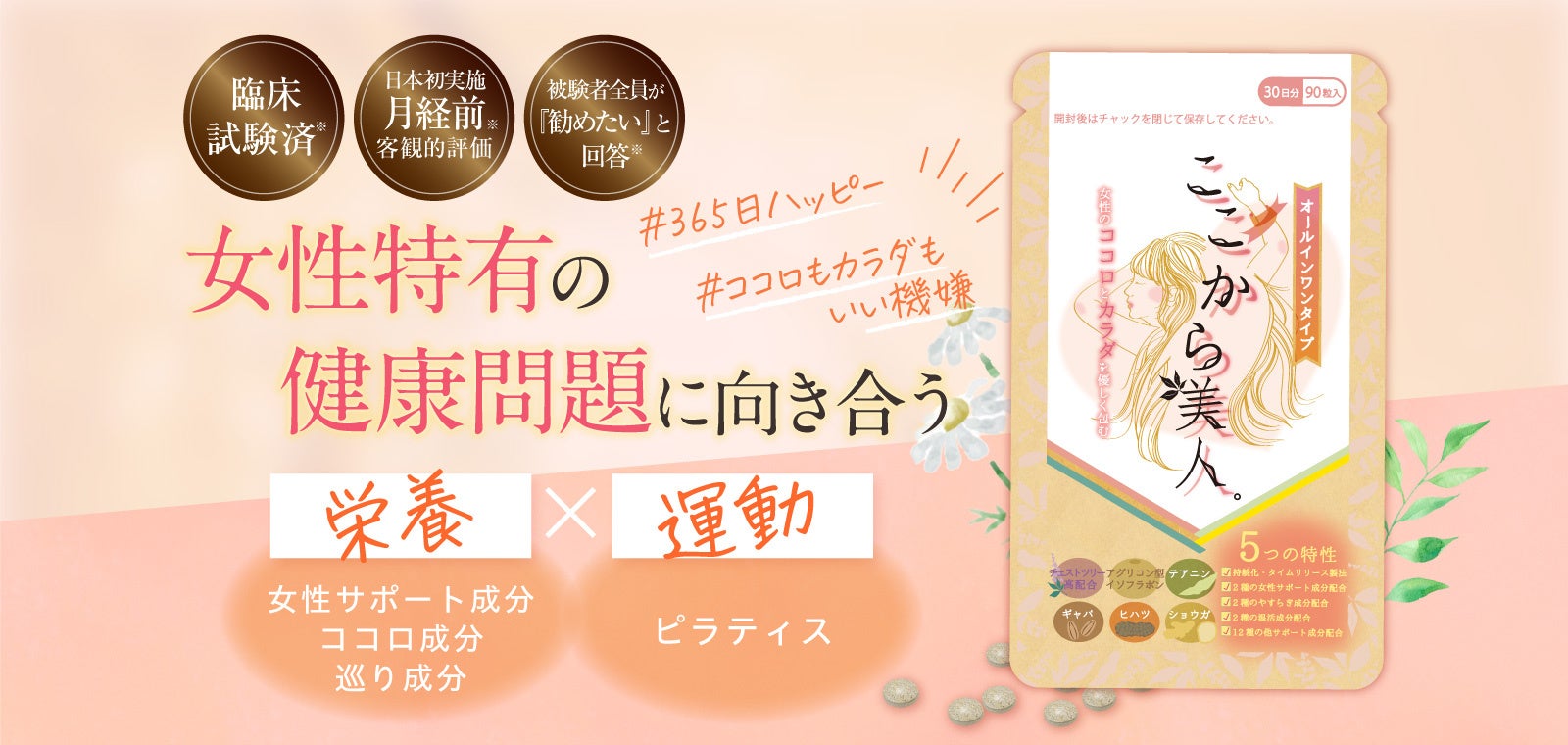 【臨床試験済*】女性の心身の健康問題に向き合い、過ごしやすい社会の実現へ。オールインワン型錠剤サプリ『ここから美人。』READY FOR限定割引価格にて先行販売開始