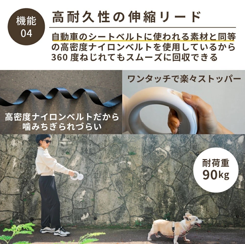 ・高密度ナイロンベルトだから噛みちぎられづらい