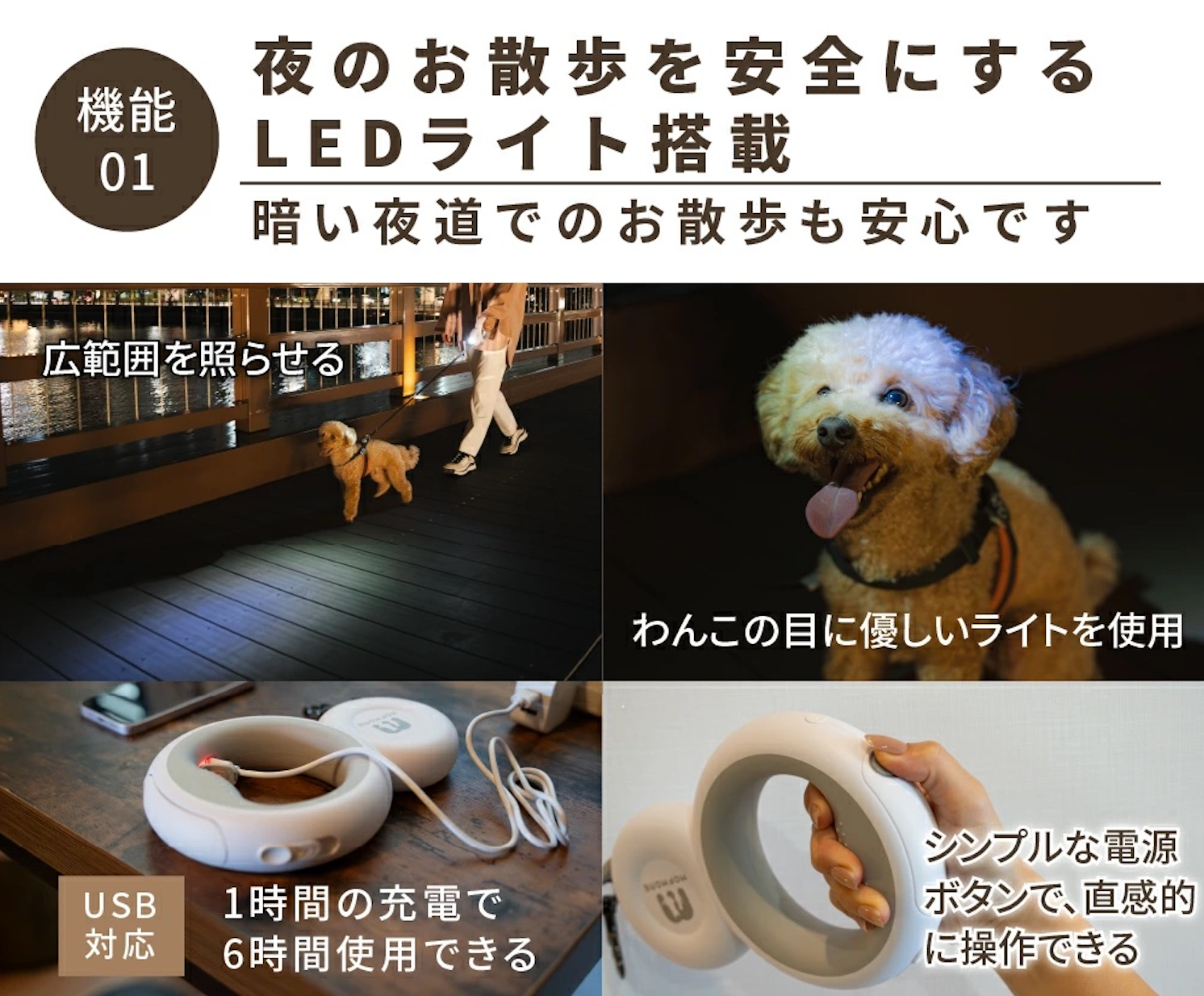 【POINT1:夜のお散歩を安全にするLEDライト搭載】