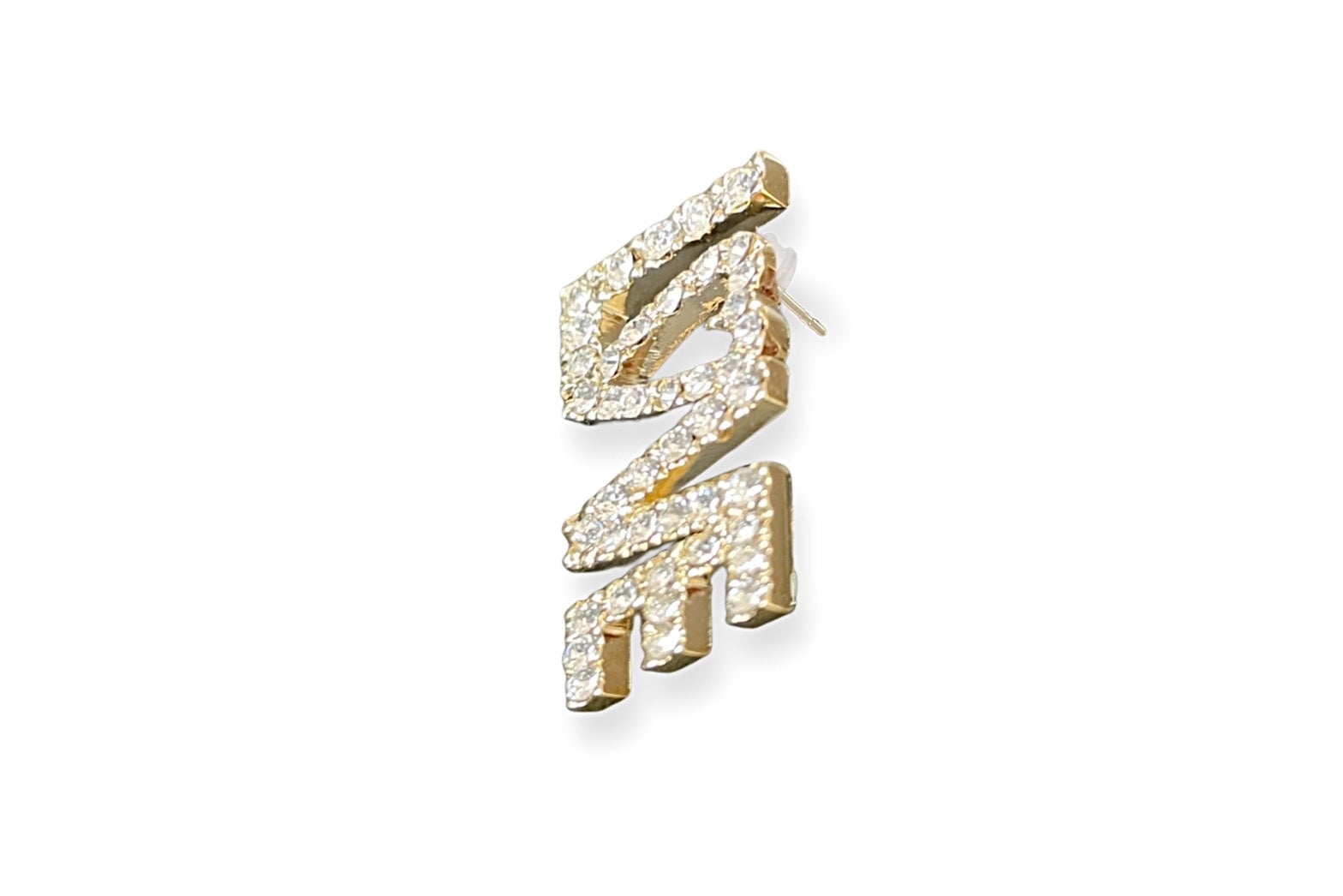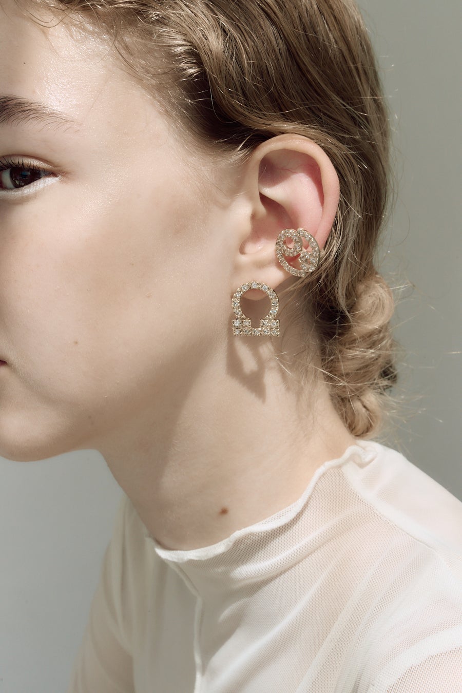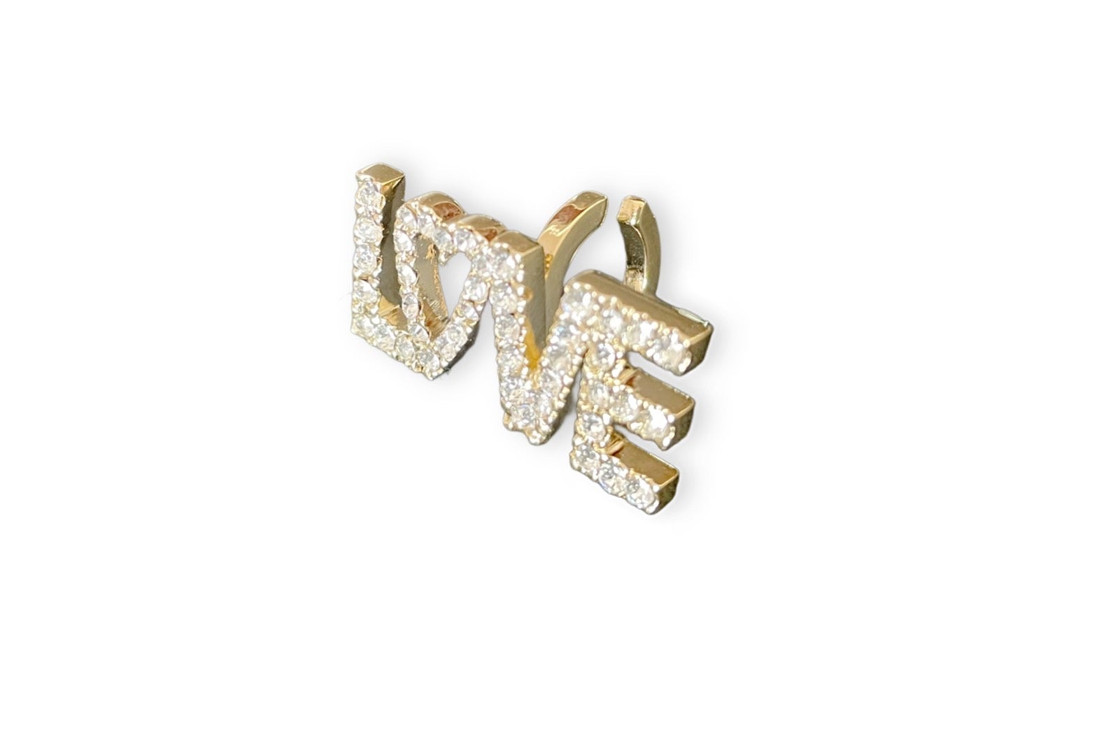 ホワイトトパーズと10Kを使用しており、ピアスの場合は、Lの部分にポストがくるので、LOVEの文字は縦になり、よりシャープに、甘すぎないコーディネートができます。