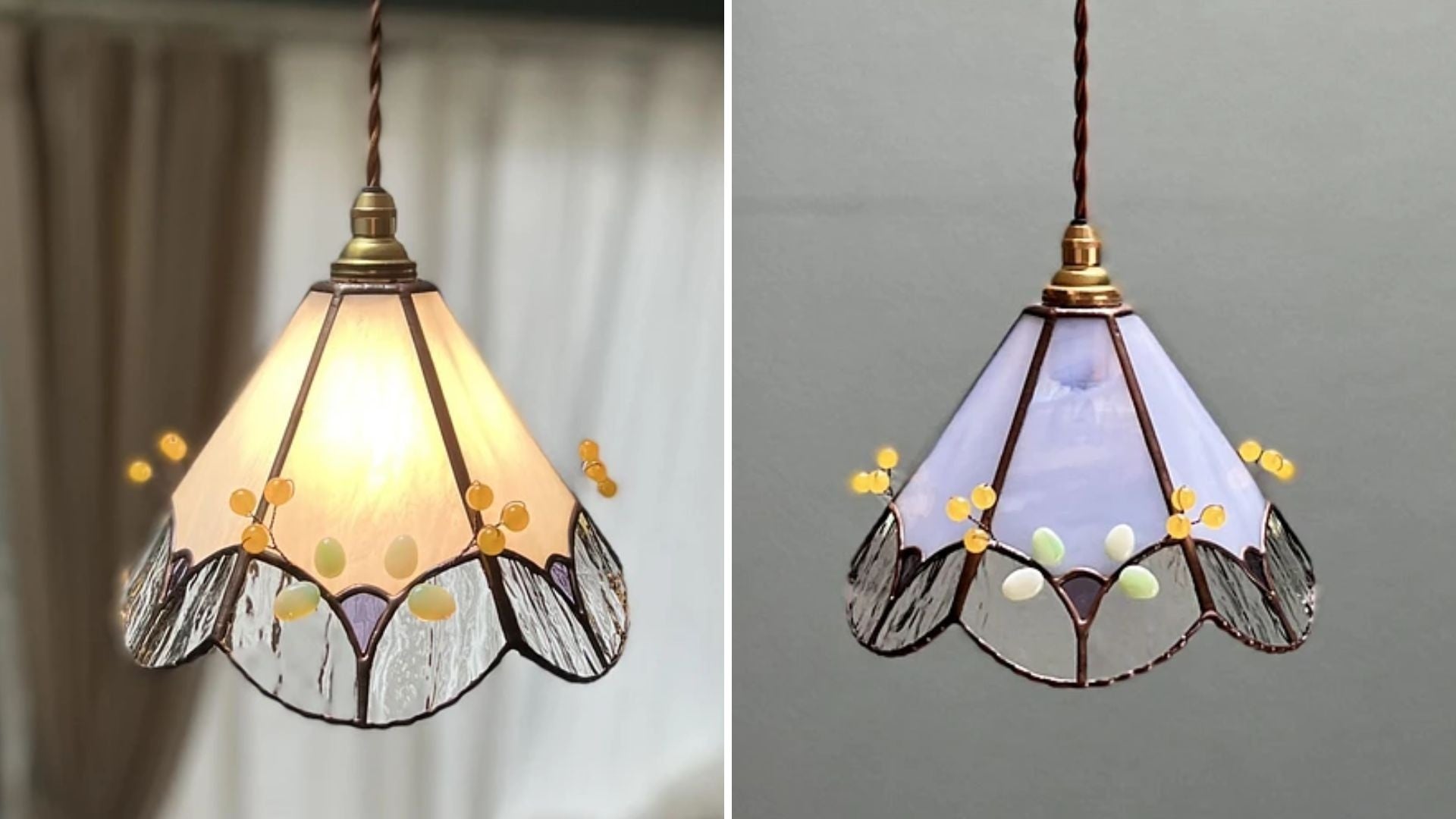 ベースになる青みがかった白色のガラスは、灯りを灯すと柔らかな温かみのある白色に変化します。