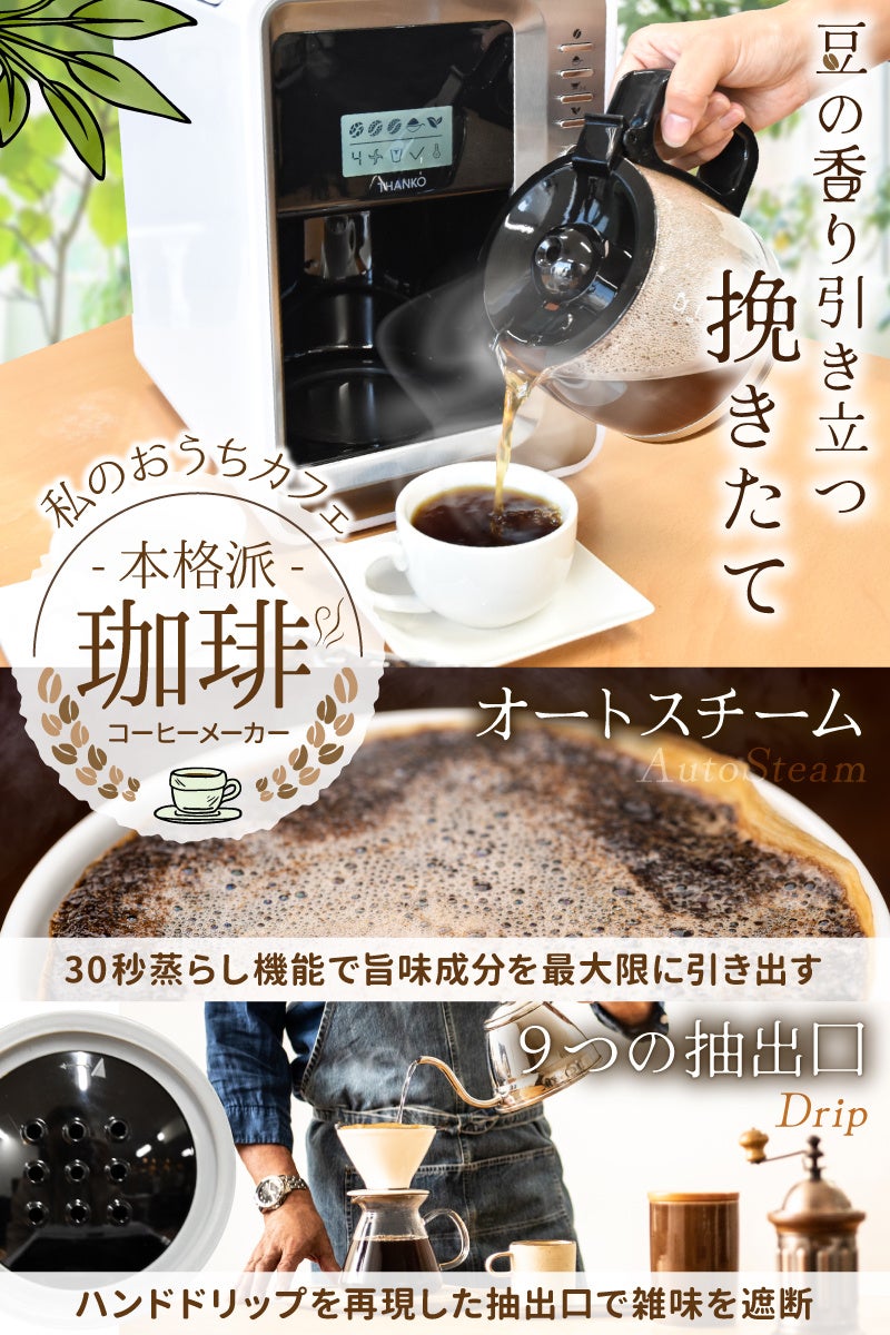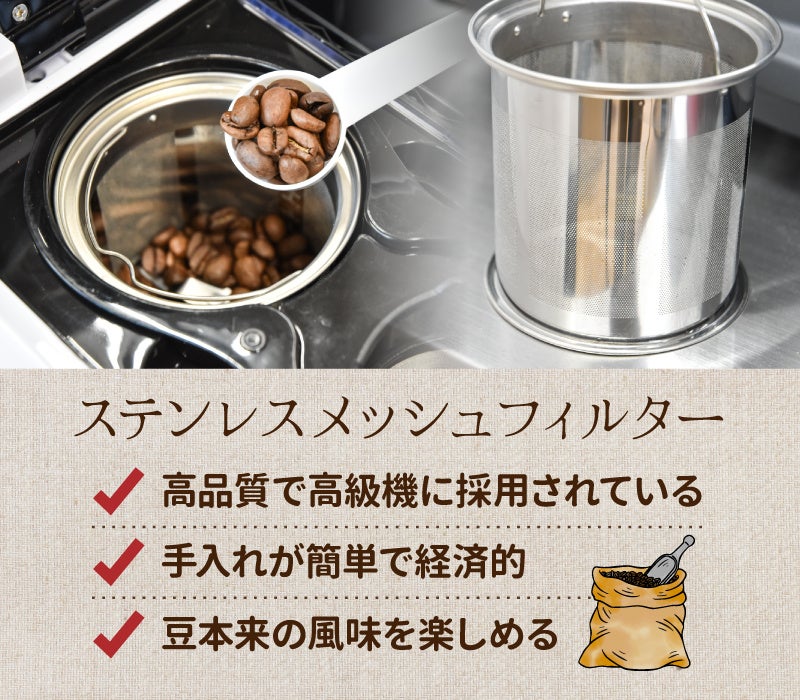 ■自動で30秒間蒸らしてコーヒー豆の美味しさを引き出すオートスチーム機能■豆の美味しさを損なわないステンレスフィルター