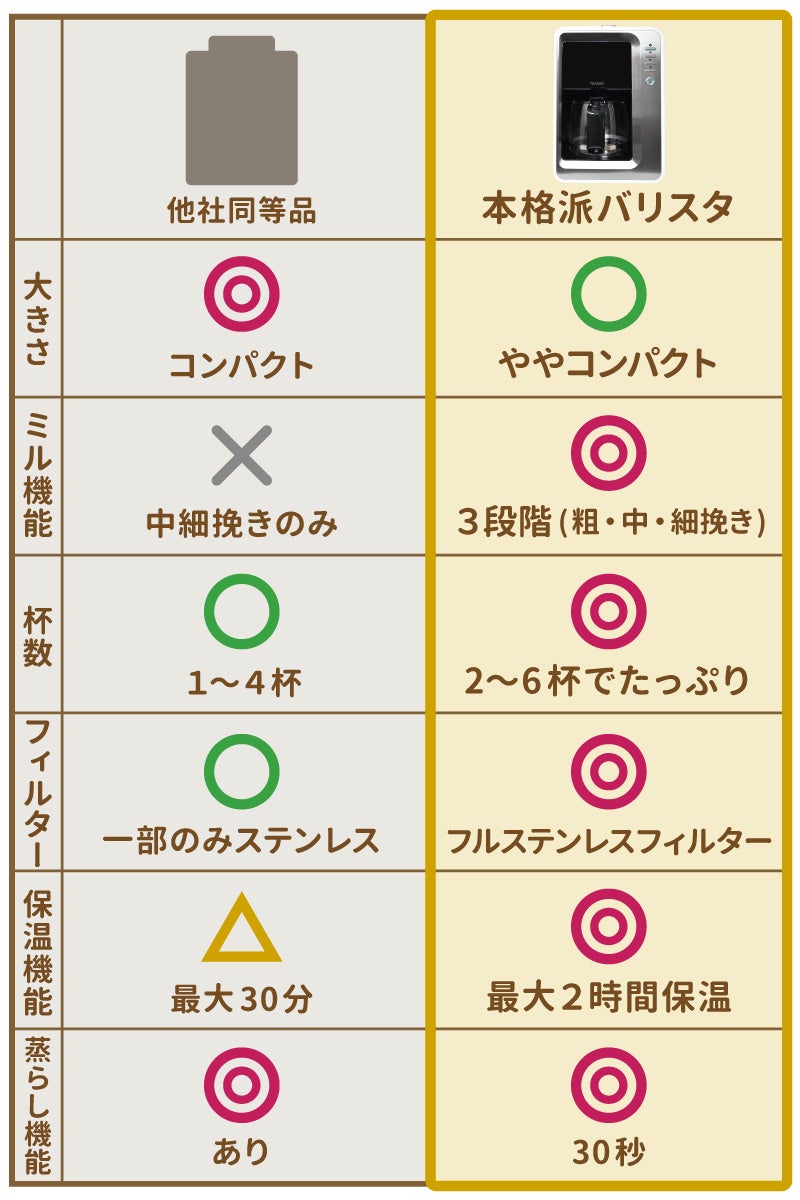 喫茶店で飲むような挽きたてでハンドドリップで淹れたような美味しいコーヒーを気軽に飲みたい。気分によって挽き方を変えて味わいたい。そんな方に全自動3段ミル付きコーヒーメーカー「本格派バリスタ」がおすすめです。