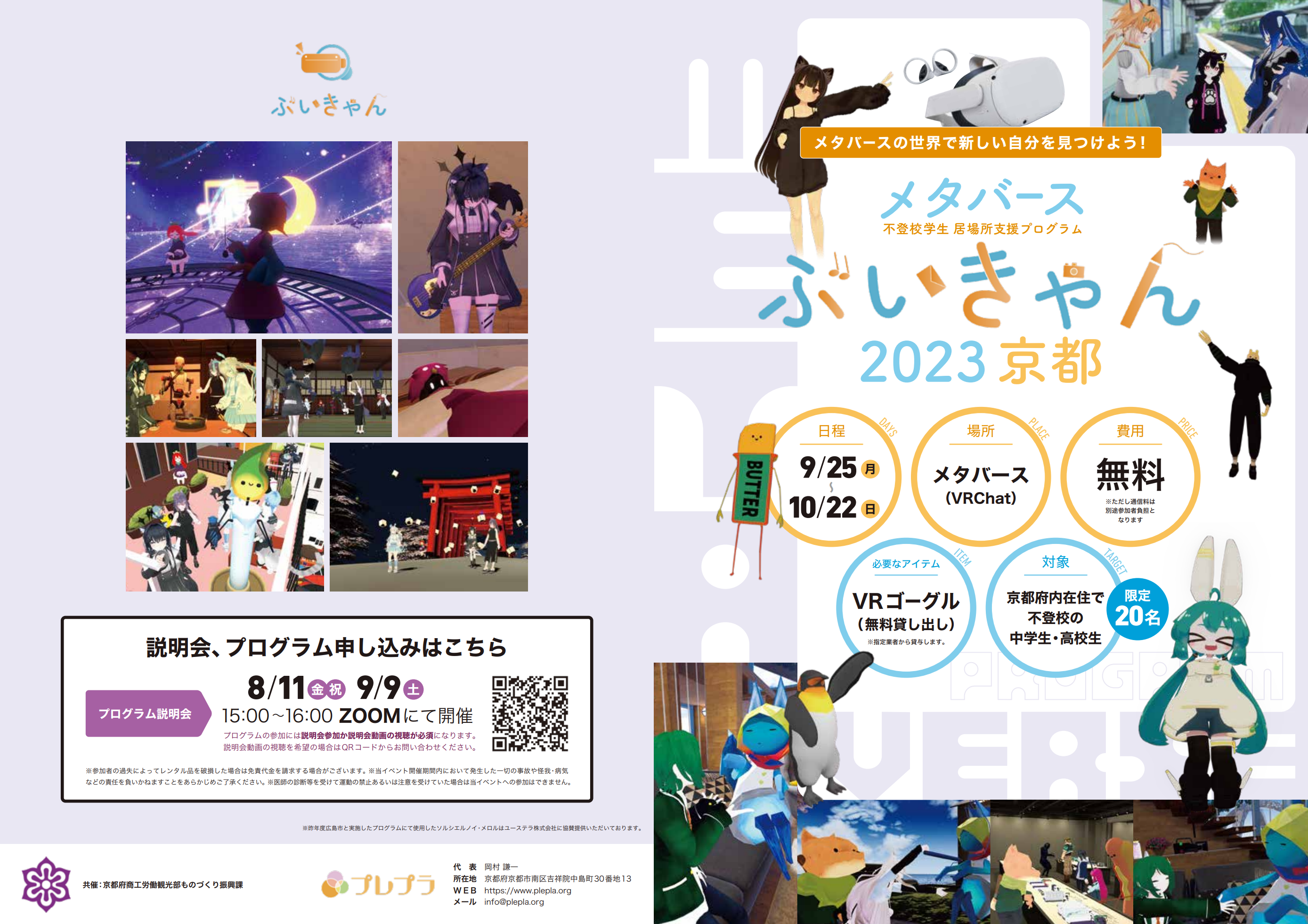 VRメタバースを活用した不登校学生向け居場所支援の本格型「ぶいきゃん2023 京都」を京都府商工労働観光部ものづくり振興課と共催。参加者を募集。
