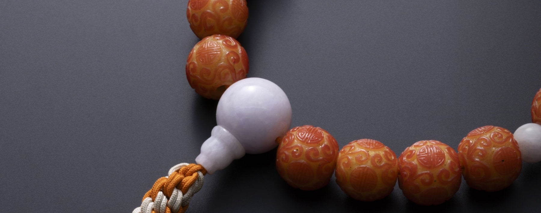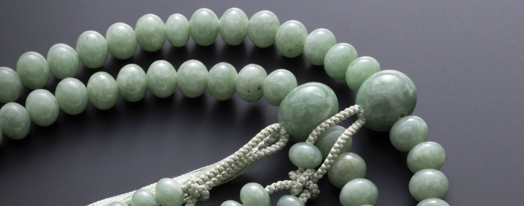 極上品の翡翠、茨布(ばらふ)の鼈甲、天然本赤珊瑚、透明感のあるグリーンアンバーなど、近年では手に入れることが難しい素材を用いた念珠を、期間限定にてお買い求めいただけます。