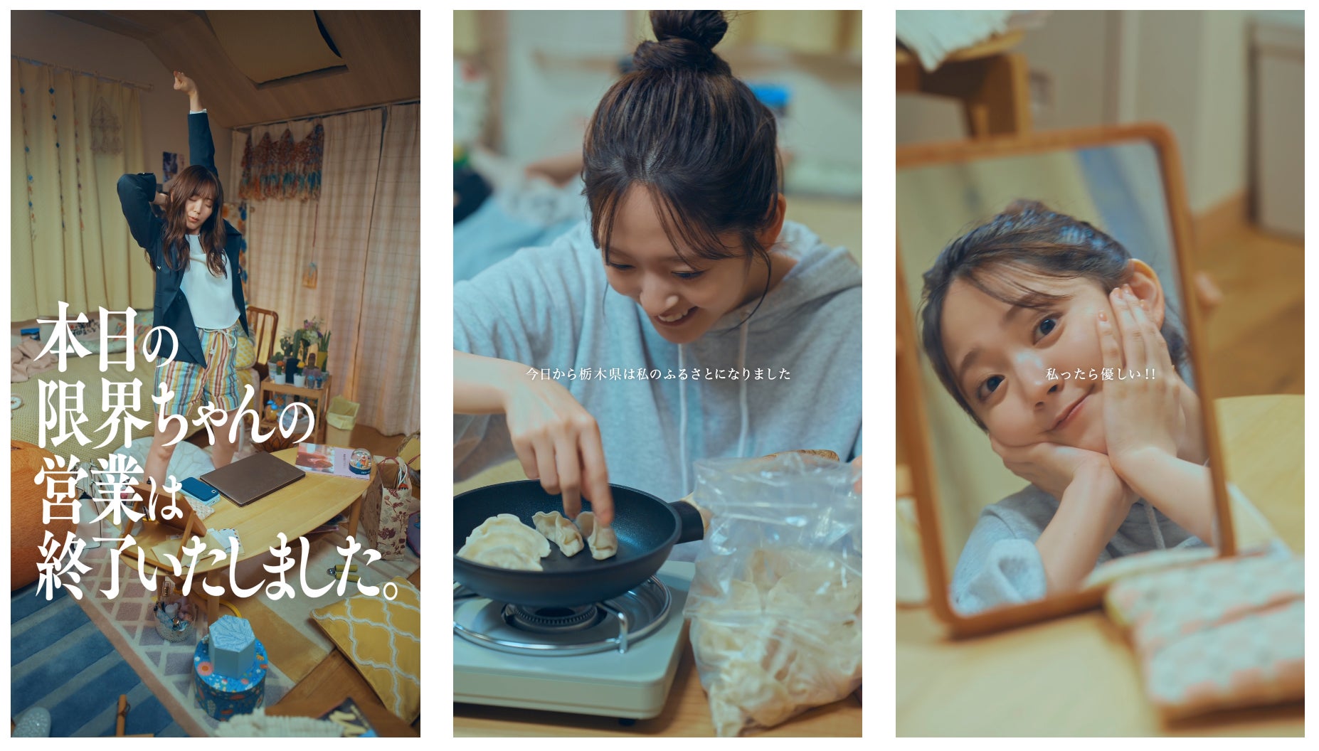 主演の「限界ちゃん」役を務める鈴木愛理さん。鈴木愛理さんが仕事終わりに疲れていても、一人の時間を自分らしく楽しむ「限界ちゃん」を表情豊かにコミカルに演じています。鈴木愛理さんのナレーションと共に、テンポよく変化する表情にご注目ください。