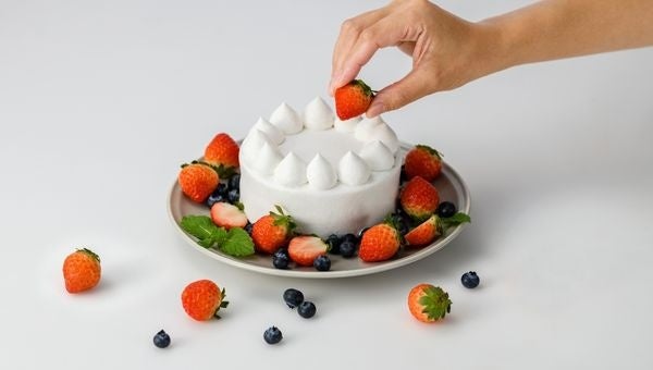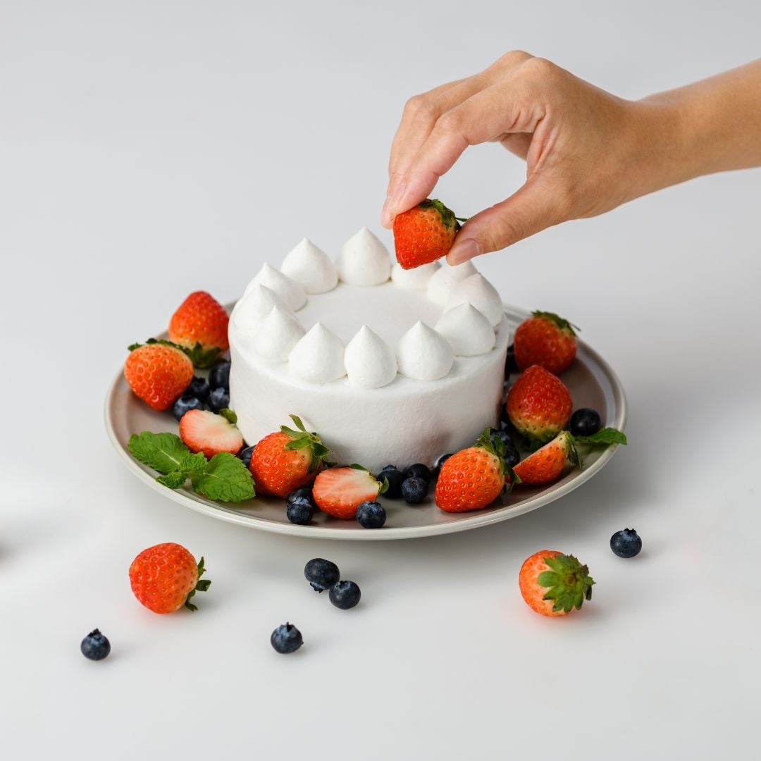 こちらの商品は、ホールケーキに豆乳のホイップをした状態でお届けをしており、最後のトッピングはお客様のお好みで楽しめる商品です。