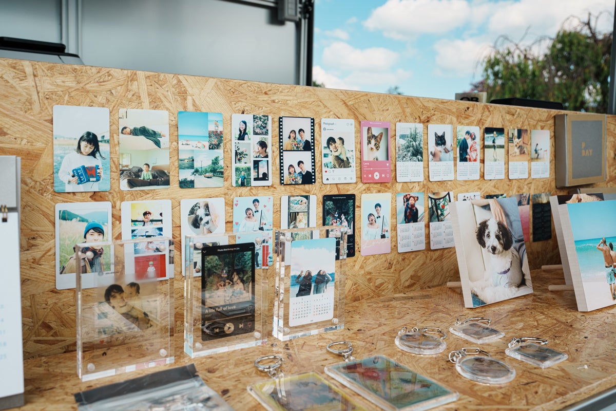 お気に入りの写真で透明・両面トレカやカレンダーがその場で作れます。さらに、レザーのアクセサリーやカメラグッズの販売、および革に刻印できるサービス(無料)も提供予定。
