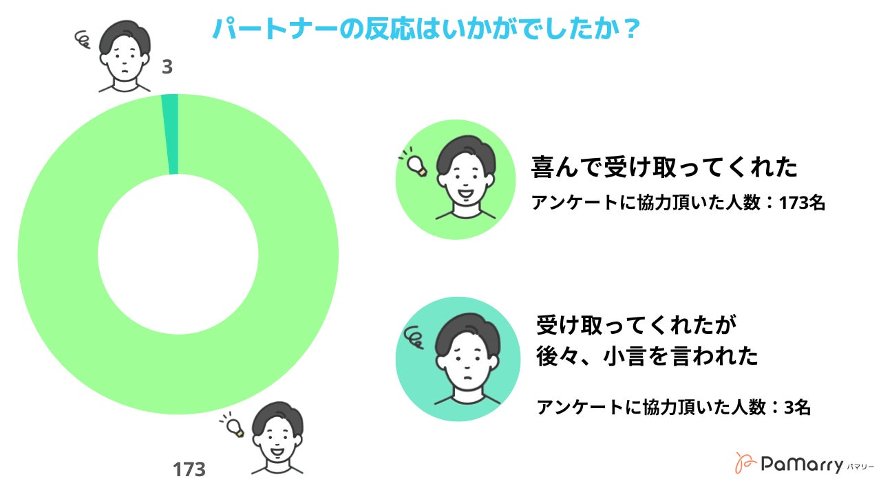 婚約指輪を渡した結果、ほとんどのパートナーは喜んでくれた結果となっています。