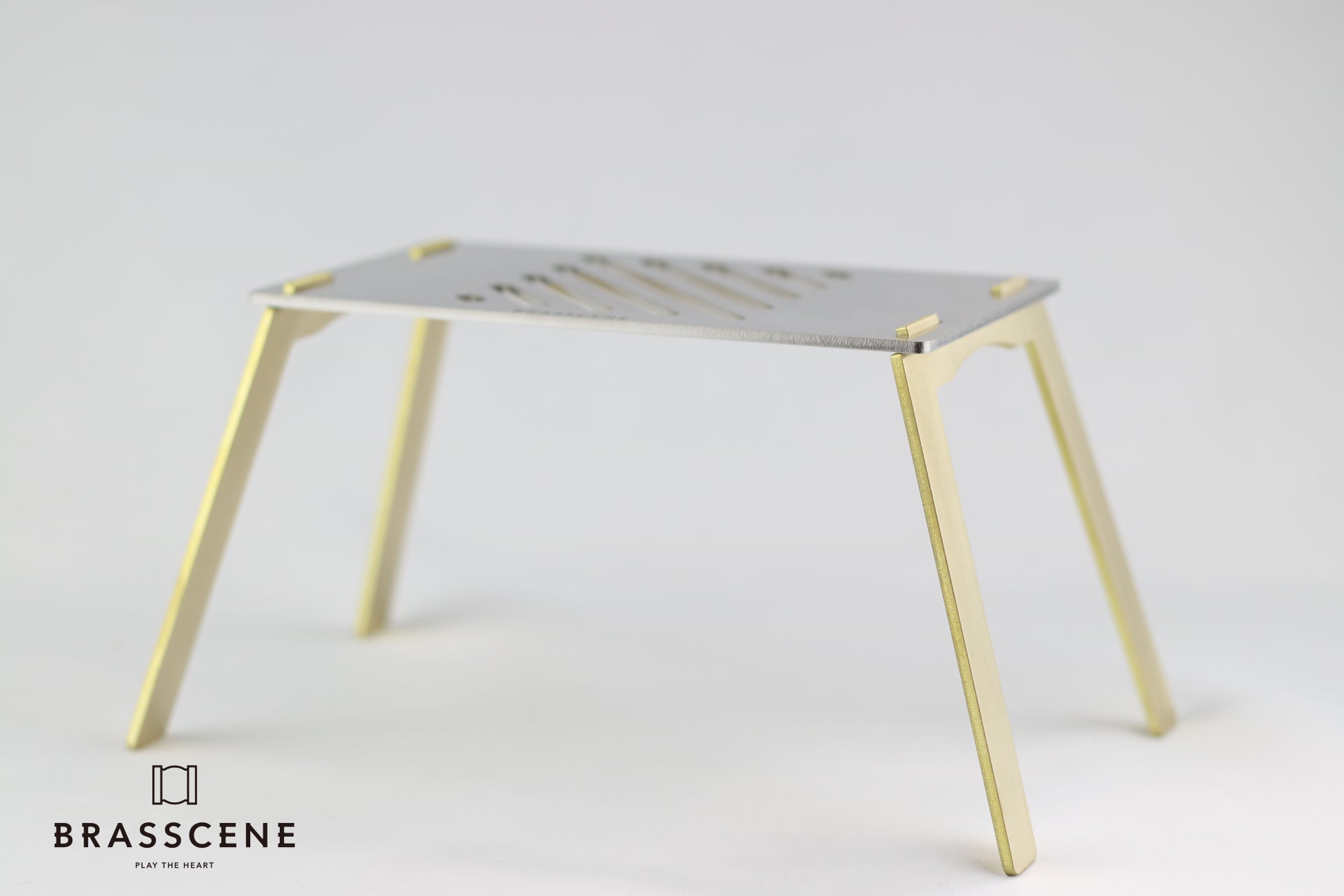 天板には、耐熱性に優れた3㎜厚のステンレスを採用しております。また脚部の真鍮も同様に3㎜厚の板材を使用しているため、コンパクトでありながら10㎏までの耐重性があります。