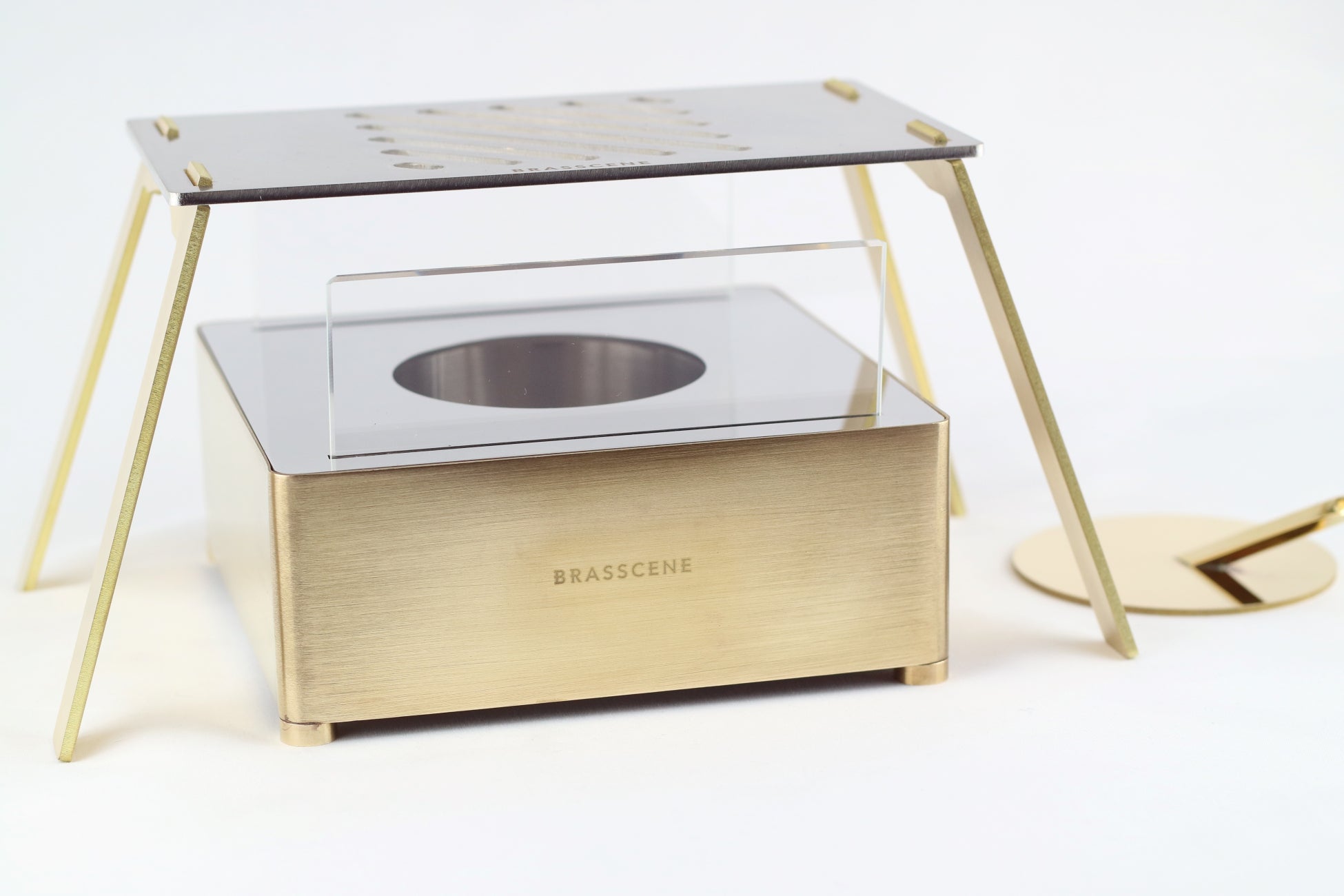 今回のアイテムは、フラッグシップである真鍮製バイオエタノールランプの魅力をさらに引き出すために考えられたアイテムです。二つのアイテムがうまく調和し、お互いの魅力を引き立て合うようにデザインにこだわりました。また、外観を楽しむだけではなく、調理器具としてもアウトドア、インドアどちらでも十分にご使用いただける機能が備わっております。お客様のシーンに合わせて、日々の暮らしが華やかになる一助になれたらと思います。