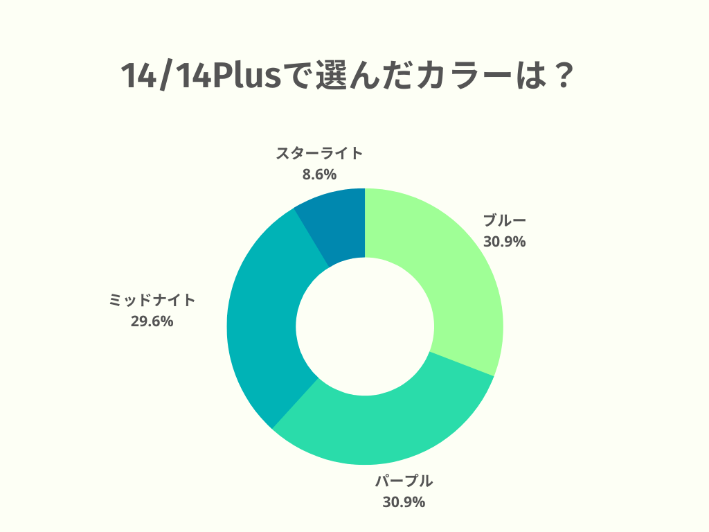 ブルー(30.9%)、パープル(30.9%)、ミッドナイト(29.6%)、 スタートライト(8.6%)という結果になりました。