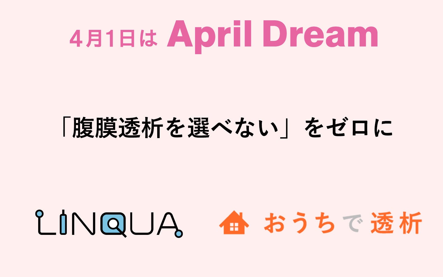 一般社団法人リンクア内の「おうちで透析」チームは、2040年までに地域に医療機関がないなど環境上の理由によって「腹膜透析を選びたくても、選べない」患者をゼロにします。