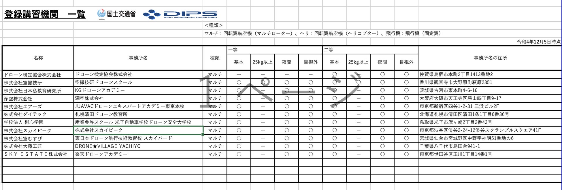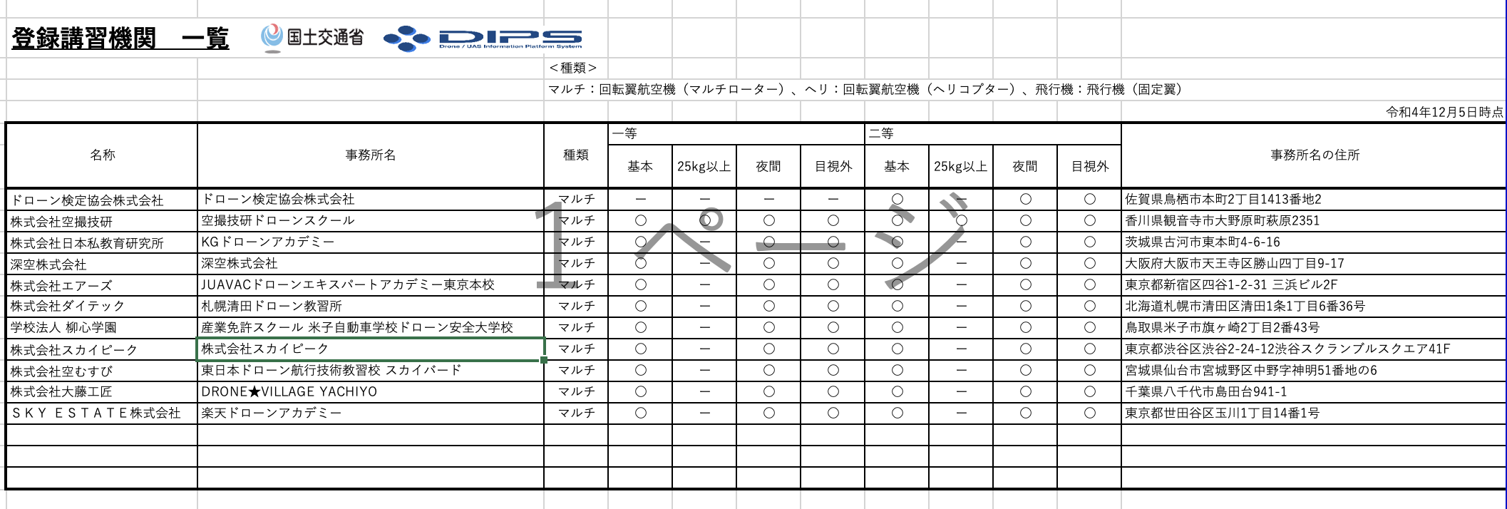ドローンの専門情報メディアが、12/5に行われたドローン操縦ライセンスの国家資格化を受け、公表された登録講習団体(資格取得の為に通うドローンスクール)一覧について、緊急調査を実施。