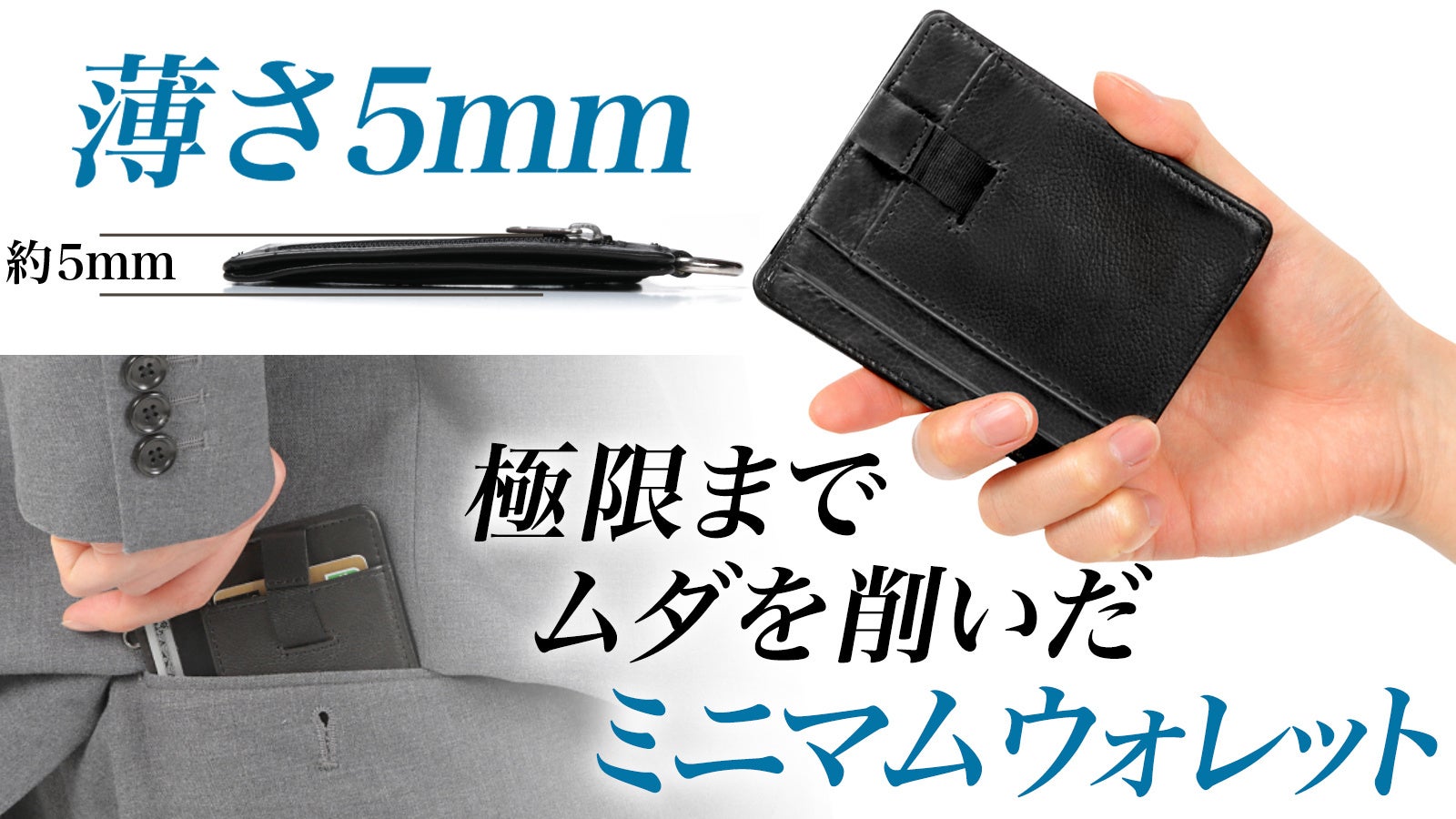 \極薄5mm/必要機能に特化したキャッシュレスのためのミニ財布!「カード・紙幣・小銭」が入るのに定期入れサイズ?!