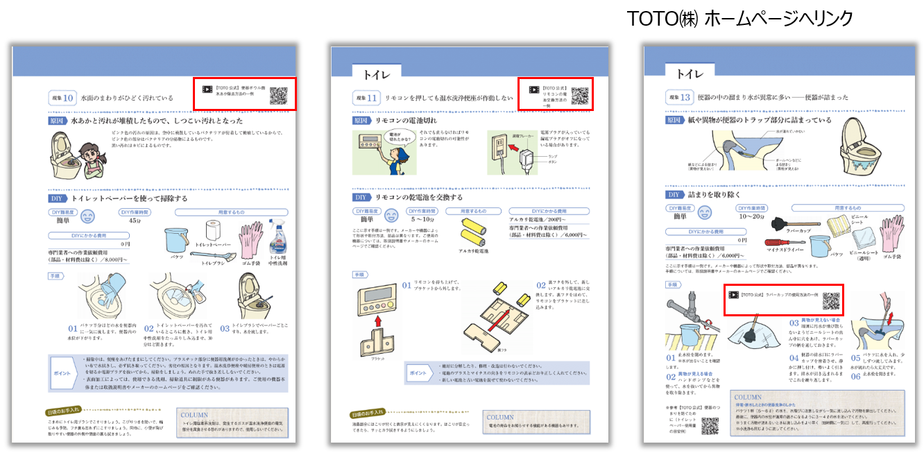 ■DIY 水まわりの設備編 【トイレ】:お手入れやお困りごとの対応について、イラストと動画リンクで分かりやすく解説。